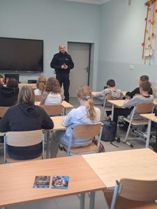 Spotkanie uczniów klas 7 i 8 z policjantem