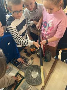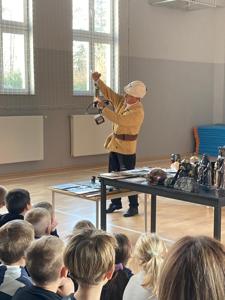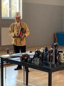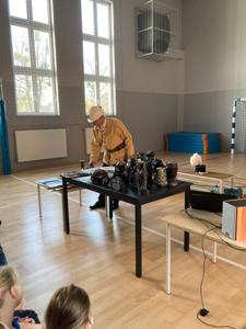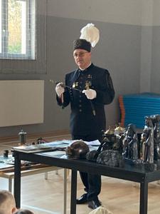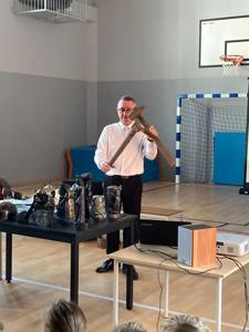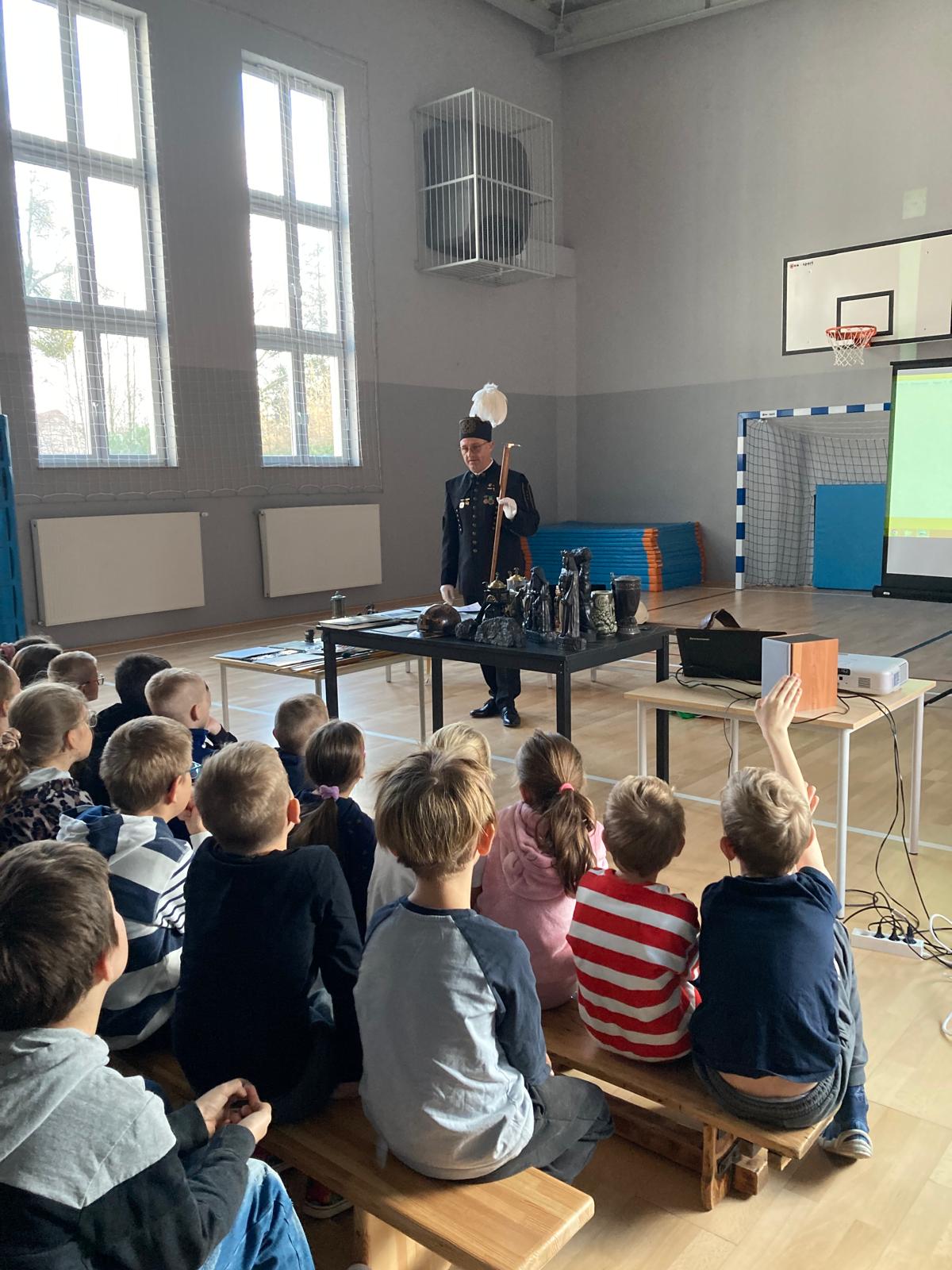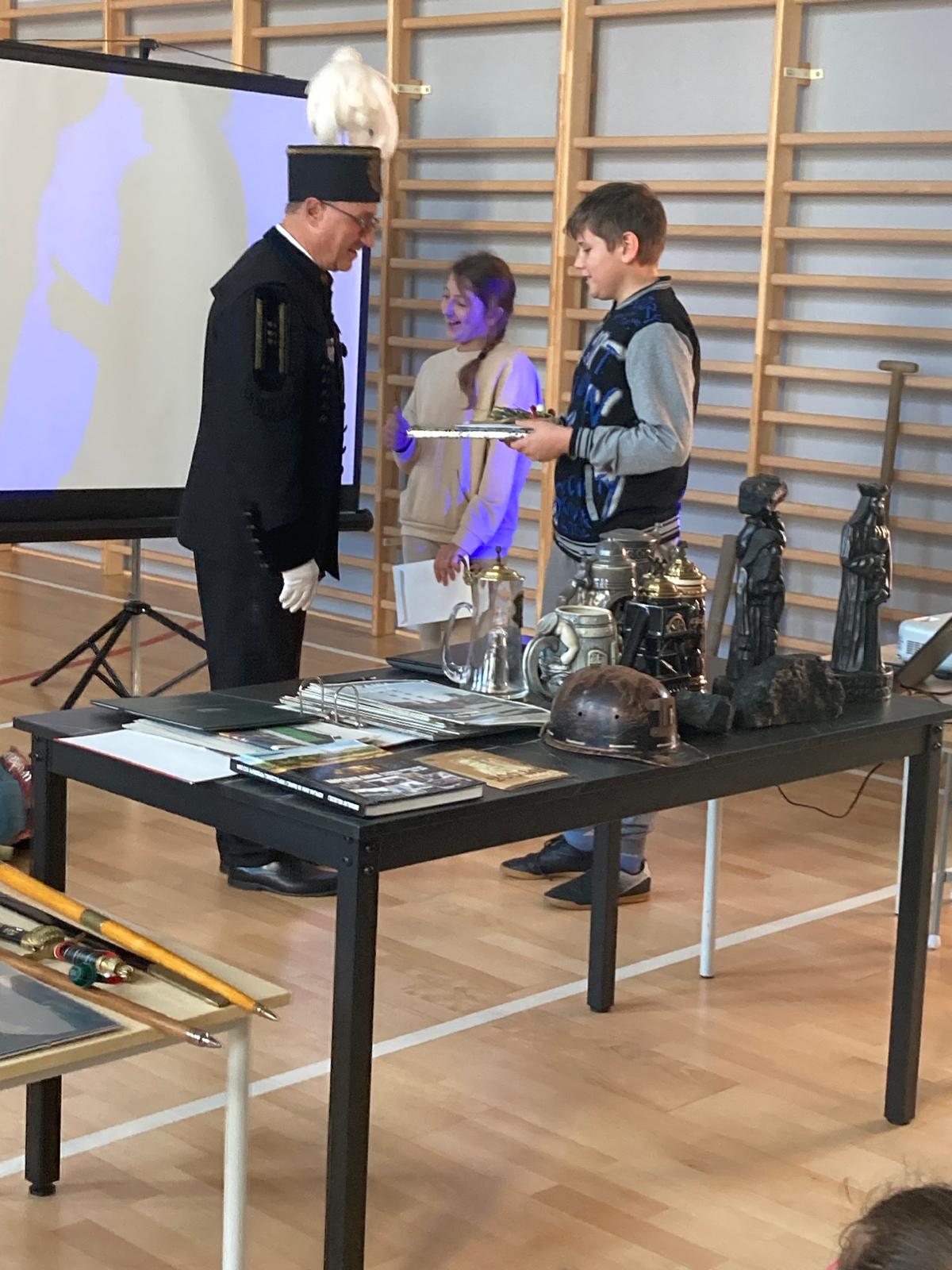 Do Szkoły w Rzuchowie wraz ze Skarbnikiem, zamieszkującym stare kopalnie, zawitał pan Marian Zimermann. Zaprezentował naszym uczniom bogate zbiory i rekwizyty związane z pracą górnika. Były to między innymi: stroje górnicze, narzędzia używane przy pracy w kopalni, stare lampki, figurki oraz zabezpieczenie górnika w razie zagrożenia życia. Wszystkie prezentowane zbiory zostały wzbogacone ciekawostkami i historiami z nimi związanymi. Interesująca prezentacja mówiącą o powstaniu węgla na Ziemi, pracy w kopalni i historii górnictwa przyciągnęła uwagę wszystkich uczestników prelekcji. Uczniowie z zaciekawieniem słuchali opowieści i mile zaskoczeni byli niespodzianką w postaci słodkości otrzymanych od Skarbnika. Panu Marianowi dziękujemy za bardzo interesujące spotkanie, za szerzenie młodemu pokoleniu tradycji związanych z górnictwem.