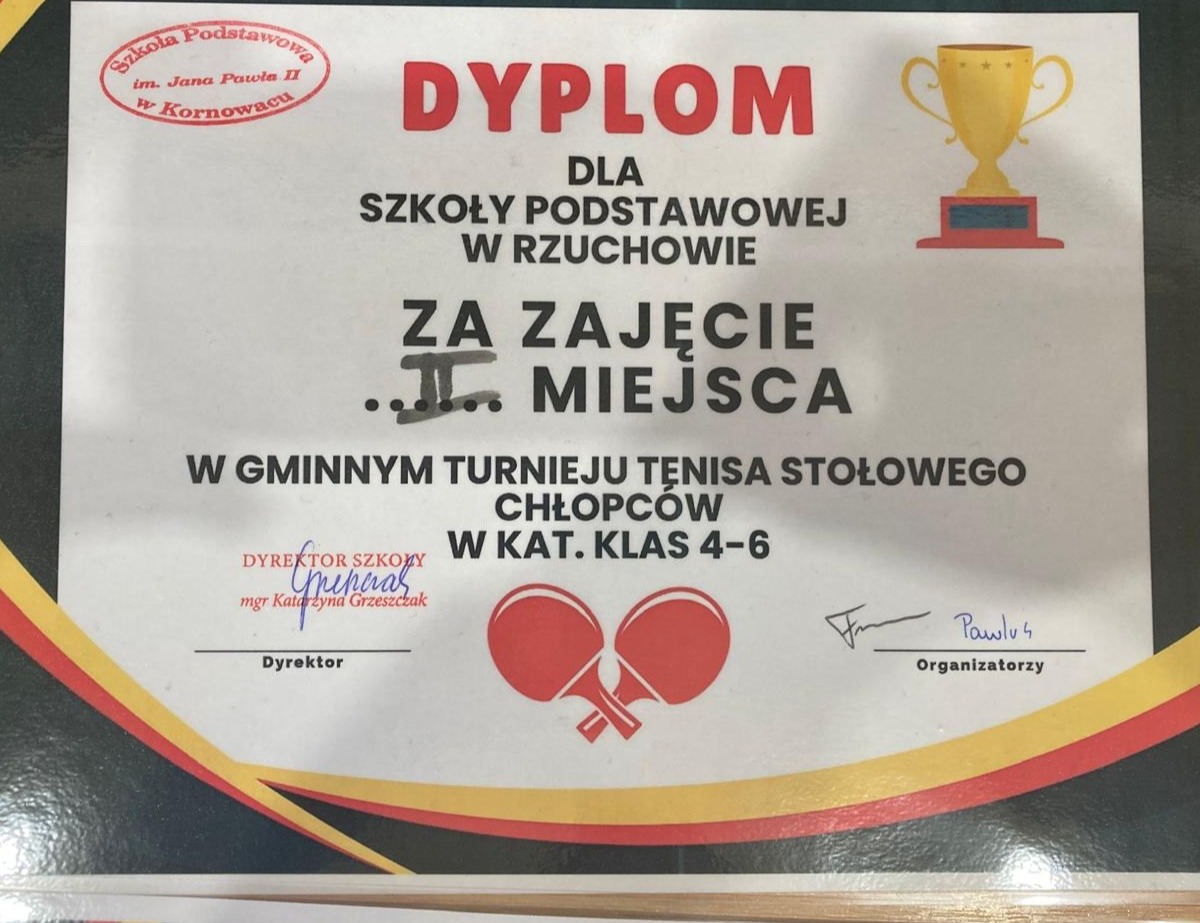 Atmosfera turnieju była pełna sportowego ducha i fair play. Wszyscy uczestnicy wykazali się ogromnym zaangażowaniem i umiejętnościami, co sprawiło, że turniej był bardzo emocjonujący. Gratulujemy wszystkim zawodnikom za ich wysiłek i determinację. Turniej tenisa stołowego był doskonałą okazją do integracji uczniów i rozwijania sportowych pasji. 🏓🏆