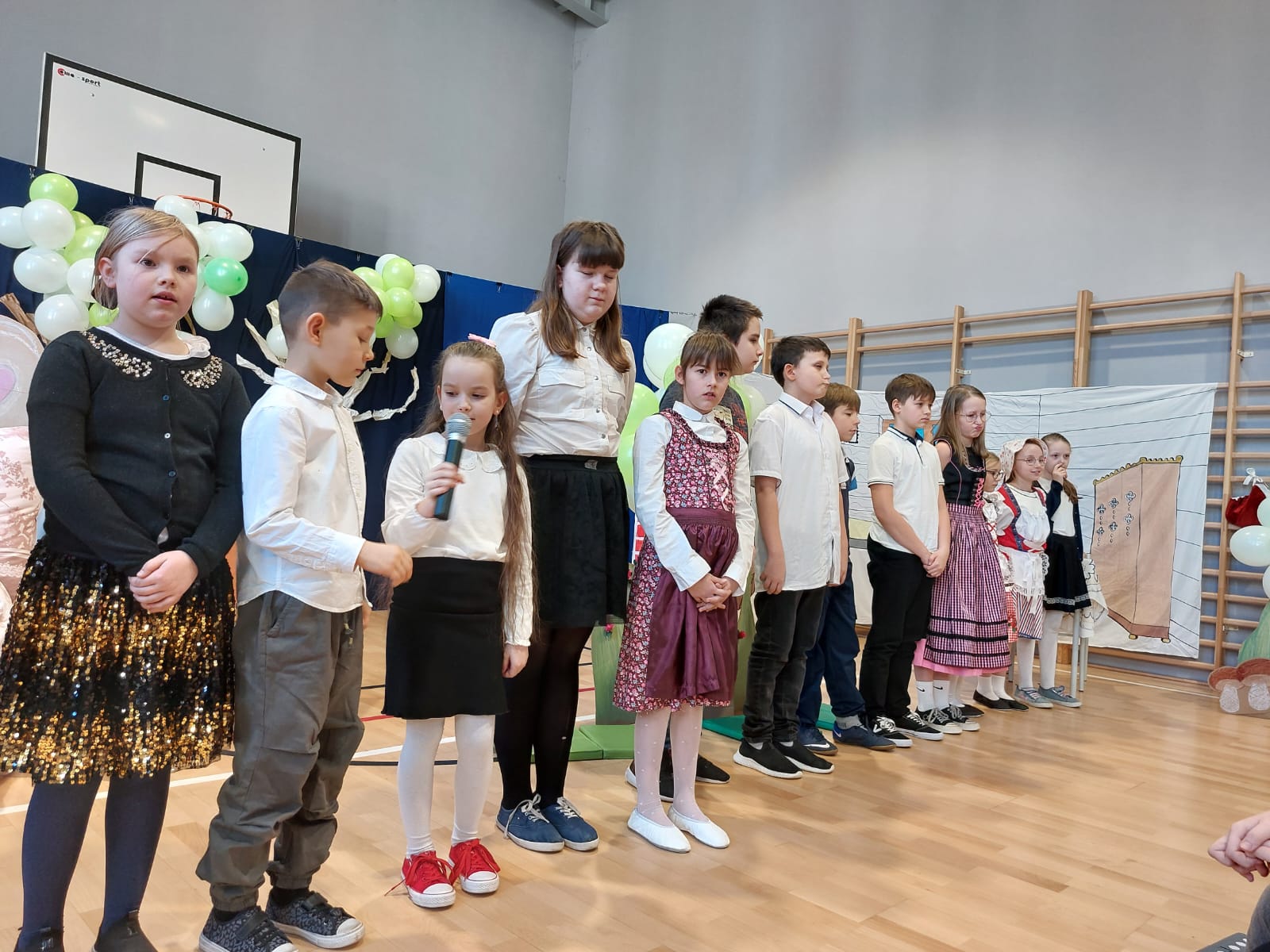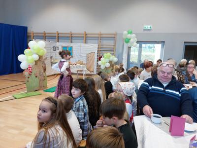 Od zawsze Dzień Babci i Dziadka to jedyne i wyjątkowe święto, które w naszej szkole obchodzone jest z wielkim zapałem i radością. Nie mogło być inaczej i w tym roku. Uczniowie klas I-V od rana z niecierpliwością oczekiwali zaproszonych gości. Kiedy sala zapełniła się kochanymi dziadkami, pani dyrektor gorąco przywitała zebranych, złożyła wszystkim serdeczne życzenia, a potem zaprosiła na przedstawienie. Były wierszyki. piosenki, życzenia oraz bajka ,,Czerwony Kapturek", która odegrana została w gwarze śląskiej. Reakcja oglądających dziadków w postaci licznych braw i uśmiechów świadczyła o zadowoleniu, wzruszeniu i poczuciu humoru. Dzieci pamiętały także o drobnych upominkąch - laurkach z życzeniami, które zostały podarowane zebranym. Wszyscy w dobrym humorze i przy słodkim poczęstunku przygotowanym przez RR i trójki klasowe, mogli miło spędzić czas i razem z wnuczętami celebrować swoje święto. Dziadkowie ciepło podziękowali za występ i spotkanie, które upłynęło w miłej i radosnej atmosferze. Do zobaczenia w przyszłym roku.