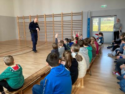 Policjanci na koniec przypomnieli też o noszeniu odblasków, rozwadze i przestrzeganiu zasad bezpieczeństwa na drodze. Za tak przekazaną lekcję edukacyjną bardzo dziękujemy naszym gościom. Wiedza ta na pewno pozwoli bezpiecznie spędzić dzieciom czas upragnionych ferii zimowych.