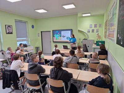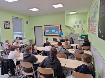13 lutego odbyły się w naszej szkole warsztaty ekologiczne dla uczniów pod hasłem "Bierzemy powietrze pod swoje skrzydła", prowadzone przez panią Annę Rogowską, Eko Doradcę Subregionu Zachodniego. Głównym celem było podnoszenie świadomości ekologicznej wśród uczniów oraz kształtowanie postaw prośrodowiskowych. Nasi uczniowie mieli okazję dowiedzieć się, jak ich codzienne wybory wpływają na stan środowiska, a także poznać konkretne sposoby minimalizowania negatywnego wpływu człowieka na naturę. Takie zajęcia to doskonała okazja dla uczniów, aby zgłębić swoją wiedzę na temat ekologii oraz zdobyć narzędzia do aktywnego działania na rzecz ochrony środowiska. Program zachęca dzieci i młodzież do współodpowiedzialności za przyszłość naszej planety, jednocześnie inspirując do poszukiwania rozwiązań proekologicznych w życiu codziennym. Szczególny nacisk dzisiejszego wydarzenia położony był na zanieczyszczenia powietrza. Bardzo dziękujemy pani Ani za atrakcyjne i angażujące warsztaty oraz pamiątkowe gadżety.