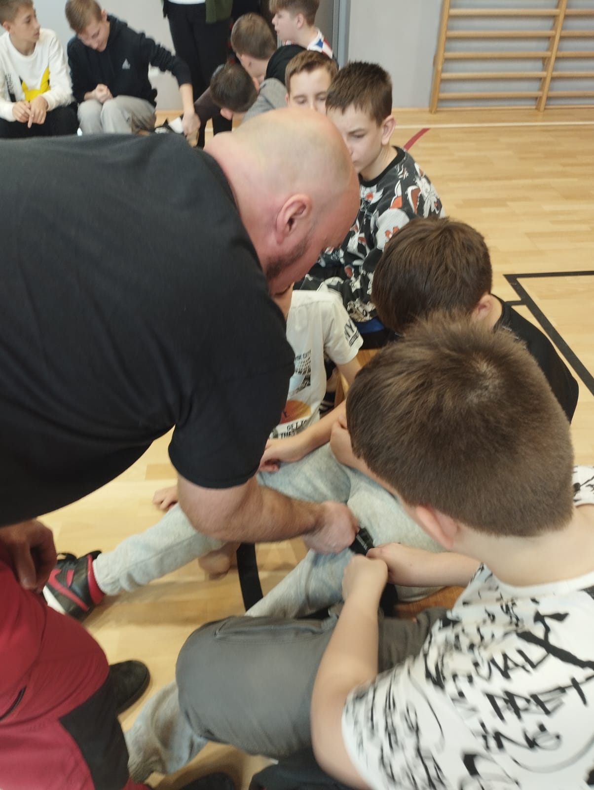 Pan Marcin opowiedział o najczęstszych przypadkach, z jakimi spotyka się w swojej pracy. Wyjaśnił jak każdy z nas może pomóc osobie poszkodowanej jeszcze przed przybyciem profesjonalnych służb.