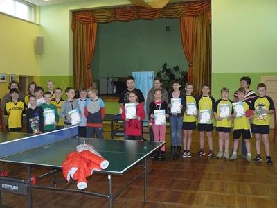 Tegoroczny turniej odbył się 7 marca 2013r. w Domu Kultury w Kobyli. Do rozgrywek stanęły drużyny ze szkół podstawowych z Kobyli, Pogrzebienia i Rzuchowa. Naszą szkołę reprezentowali następujący zawodnicy: Mateusz Buda, Szymon Ficner, Miłosz Musiolik, Kamil Jęczmionka, Oliwia Ficke, Magdalena Skatuła, Oliwia Gosek i Natalia Primus. Wyniki rozgrywek wśród chłopców przedstawiają się następująco: I miejsce zajął Kamil Koczor z Pogrzebienia, II miejsce - Kamil Wieczorek z Kobyli, III miejsce wywalczył Kamil Cieślik ze szkoły w Pogrzebieniu. Wśród dziewcząt I miejsce zajęła Anna Koczor z Pogrzebienia, II miejsce- Julia Dąbrowska z Kobyli, a III miejsce zdobyła Agnieszka Jędzura z Pogrzebienia. Drużynowo I miejsce zajęła Szkoła Podstawowa w Pogrzebieniu, II miejsce - Szkoła Podstawowa w Kobyli, III miejsce przypadło Szkole Podstawowej w Rzuchowie. Zwycięzcy otrzymali pamiątkowe dyplomy i medale. Organizator turnieju Anna Adamczyk serdecznie dziękuje za ogromną pomoc i współpracę Paniom: Małgorzacie Drzeniek i Wiesławie Bochenek za zaangażowanie, udostępnienie sali i pomoc w przewozie stołów tenisowych. Organizator konkursu dziękuje także Rodzicom i Dziadkom, którzy pomagali w przeprowadzeniu zawodów.