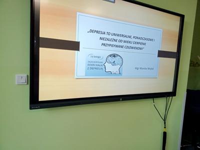 Pani mgr Monika Wojtal prowadząca zajęcia starała się uporządkować posiadaną przez uczniów wiedzę na temat depresji. Wyjaśniła , że depresja jest chorobą, którą można wyleczyć i najważniejsze wskazała miejsca, w których osoba chora może uzyskać specjalistyczną pomoc.