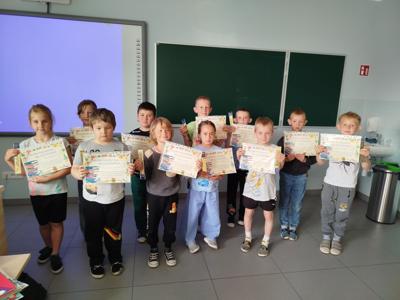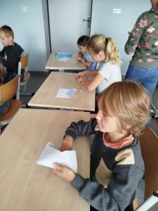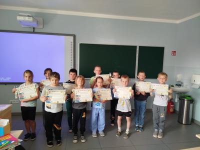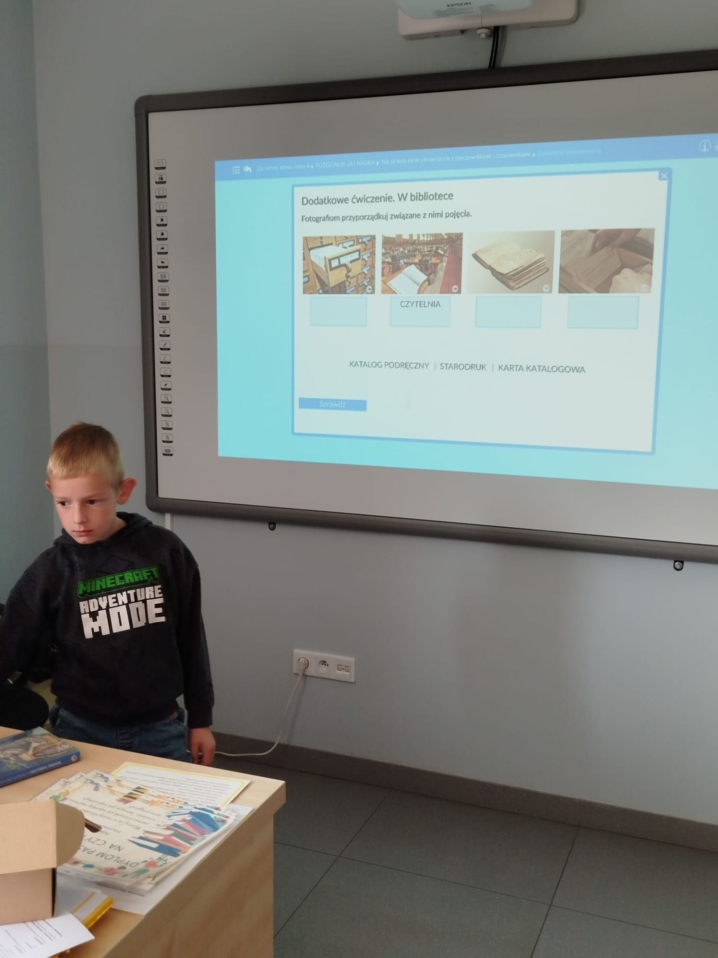 11 osobowa grupa pierwszaków najpierw uczestniczyła w specjalnie na tę okazję przygotowanej lekcji bibliotecznej. Dzieci poznały podstawowe zadania biblioteki, czytelni, dowiedziały się, jak należy zachować się w tym miejscach. Obejrzały też prezentację o najciekawszych bibliotekach świata, by nieco później wiedzę tę zestawić z naszą biblioteką szkolną. Uczniowie dowiedzieli się, czym jest katalog rzeczowy, jak funkcjonuje system e- biblio, czy ile woluminów liczy szkolny księgozbiór. Oczywiście nie zabrakło również zajęć praktycznych, w czasie których rozwiązywali zadanie interaktywne i układali z rozsypanek wyrazowych prośby książek do dzieci, będące zarazem zbiorem cennych wskazówek, jak należy lub nie obchodzić się z książką. Na koniec zajęć miała miejsce najważniejsza część- dzieci złożyły uroczyste ślubowanie, podczas którego oficjalnie zostały czytelnikami, przyrzekając, że będą szanować książki i korzystać z ich mądrości. Na pamiątkę tej chwili każdy otrzymał dyplom pasowania na czytelnika i zakładkę do książki.