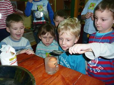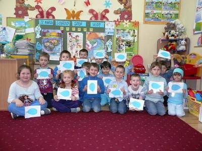 22 marca po raz pierwszy w przedszkolu w Rzuchowie obchodziliśmy Światowy Dzień Wody, który został ustanowiony w 1992 przez Zgromadzenia Ogólne ONZ w ramach Agendy 21 w czasie Konferencji w Rio de Janerio (Brazylia). Ideą obchodzenia tego dnia jest uświadomienie wszystkim konieczności racjonalnego korzystania z wody oraz kształtowanie postaw proekologicznych. W tym dniu w naszym przedszkolu dzieci ubrane na niebiesko rozmawiały na temat wykorzystania wody, przyczyn i skutków zanieczyszczenia oraz sposobów jej ochrony. Brały udział także w „wodnych” doświadczeniach, dzięki którym dowiedziały się, jakie właściwości ma woda oraz dlaczego jedne przedmioty toną w wodzie, a inne utrzymują się na powierzchni. Na zakończenie wspólnie wykonały plakat „Obieg wody w przyrodzie” oraz indywidualnie pracę „Niebieski obrazek”. W naszych zabawach i doświadczeniach brali udział także nasi przyjaciele: Zdrojek (główny bohater programu „Mamo, tato wolę wodę”) oraz Kubuś ( główna postać programu „Kubusiowi Przyjaciele Natury”), dzięki którym to w tym roku szkolnym pogłębiamy naszą wiedzę z zakresu zdrowych nawyków żywieniowych, przyrody i ekologii. Ten „wodny” dzień był wyjątkowy i dostarczył nam wielu wrażeń. Mamy nadzieję, że obchody Światowego Dnia Wody na stałe wpiszą się w kalendarz imprez naszego przedszkola.