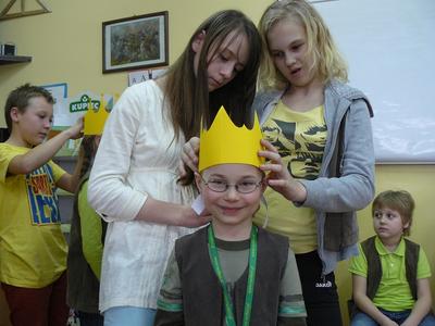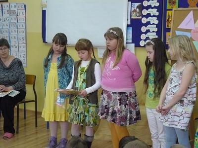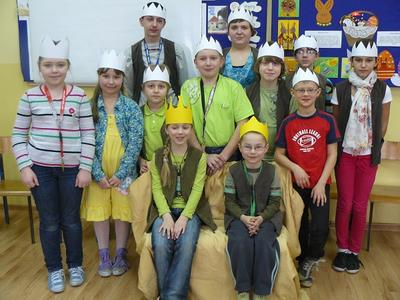 Pierwszy dzień wiosny powitaliśmy wspólną zabawą, w czasie której spośród uczniów Szkoły Podstawowej w Rzuchowie wybieraliśmy Króla i Królową Uprzejmości. Do konkursu stanęli chłopcy oraz dziewczynki wybrani w drodze głosowania przez poszczególne klasy. Każy uczeń mógł oddać swój głos na kolegę, który, jego zdaniem, jest na co dzień kulturalny, uprzejmy, miły i serdeczny wobec swych rówieśników. Za takich uczniów uznano: Ewę Adamczyk, Łukasza Kwiatkowskiego, Patrycję Wycisk, Jakuba Rusoka, Klaudię Deptę, Filipa Franiczka, Martynę Grelę, Łukasza Domańskiego, Oliwię Ficke, Szymona Murańskiego, Oliwię Gosek oraz Roberta Plurę. Uczniowie ci musieli następnie wykazać się wiedzą i umiejętnościami dotyczącymi zasad savoir - vivre'u. Z kolejnymi rundami turnieju najlepiej poradzili sobie uczniowie klasy I - Ewa Adamczyk i Łukasz Kwiatkowski - i tym samym otrzymali ów zaszczytny tytuł Króla i Królowej Uprzejmości. Zabawę uświetnił wiosenny występ drugoklasistów przygotowany przez panią Henrietę Fojcik.