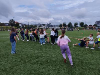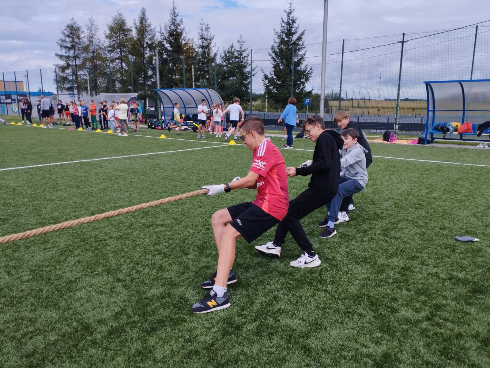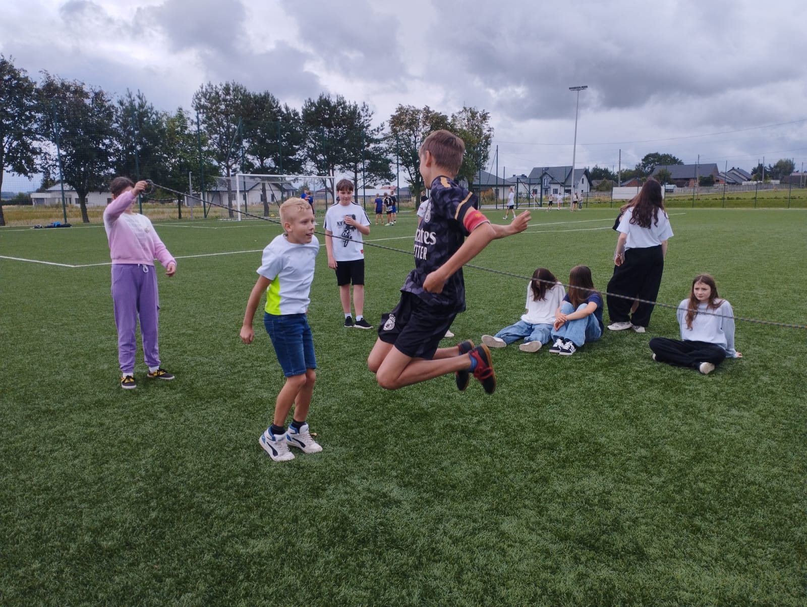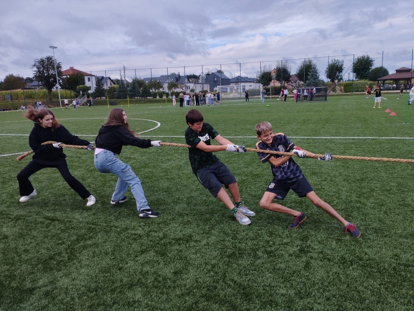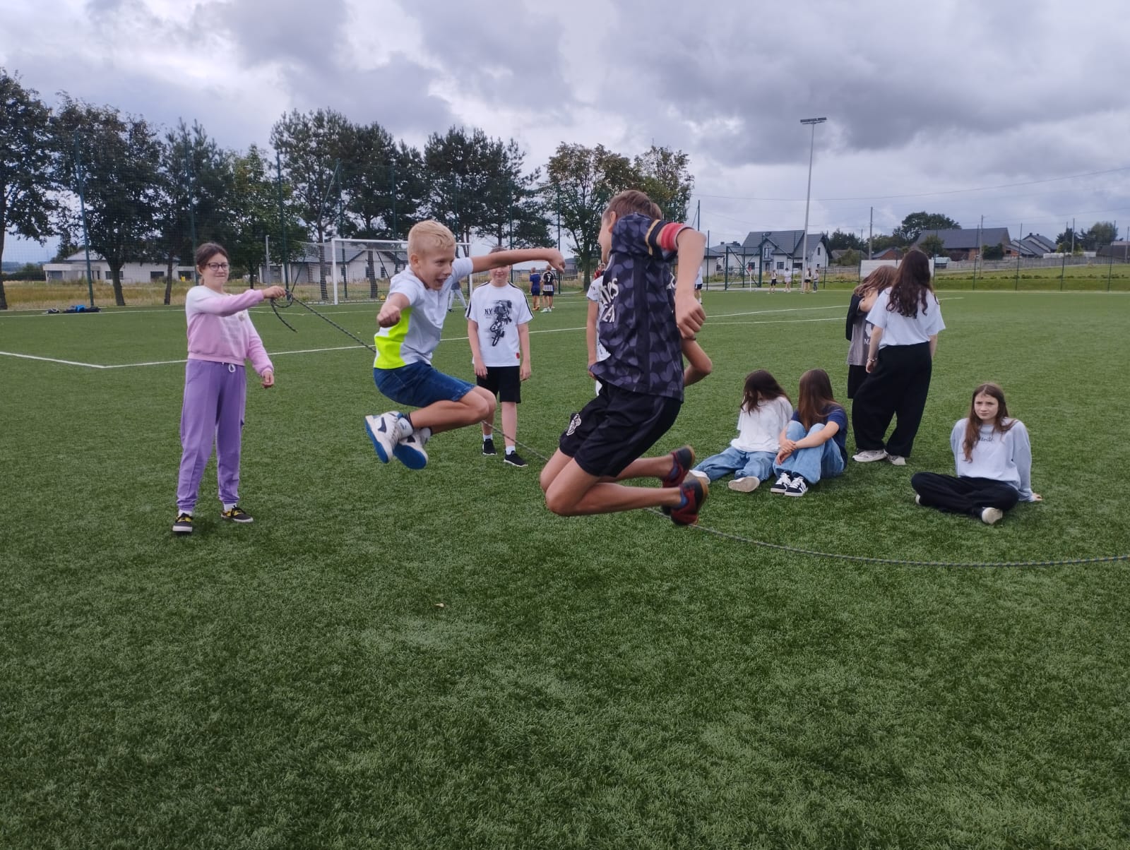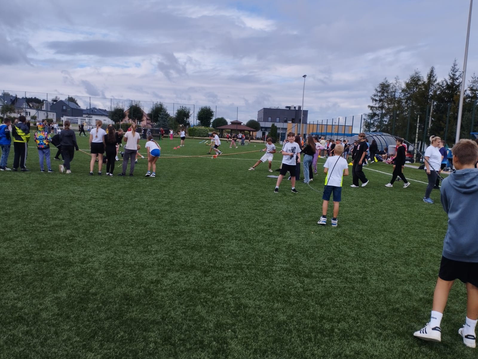 W dniu 11 września 2025 nasi uczniowie wzięli udział w rekreacyjnej imprezie z okazji Międzyszkolnego Dnia Sportu, którego organizatorem był Uczniowski Klub Sportowy „Błyskawica”. Na obiekcie boisk piłkarskich w Kornowacu uczestników czekało wiele atrakcji, podczas których mogli sprawdzić swoją sprawność np.; pokonując tor przeszkód, rywalizować w przeciąganiu liny, zagrać w dwa ognie, zmierzyć swoją celność w rzutach, czy strzałach do bramki i dobrze bawić się w skokach na skakance. Czas spędzony na dobrej zabawie zakończył się smacznym posiłkiem. Był to dzień pełen wrażeń, radości i emocji sportowych.