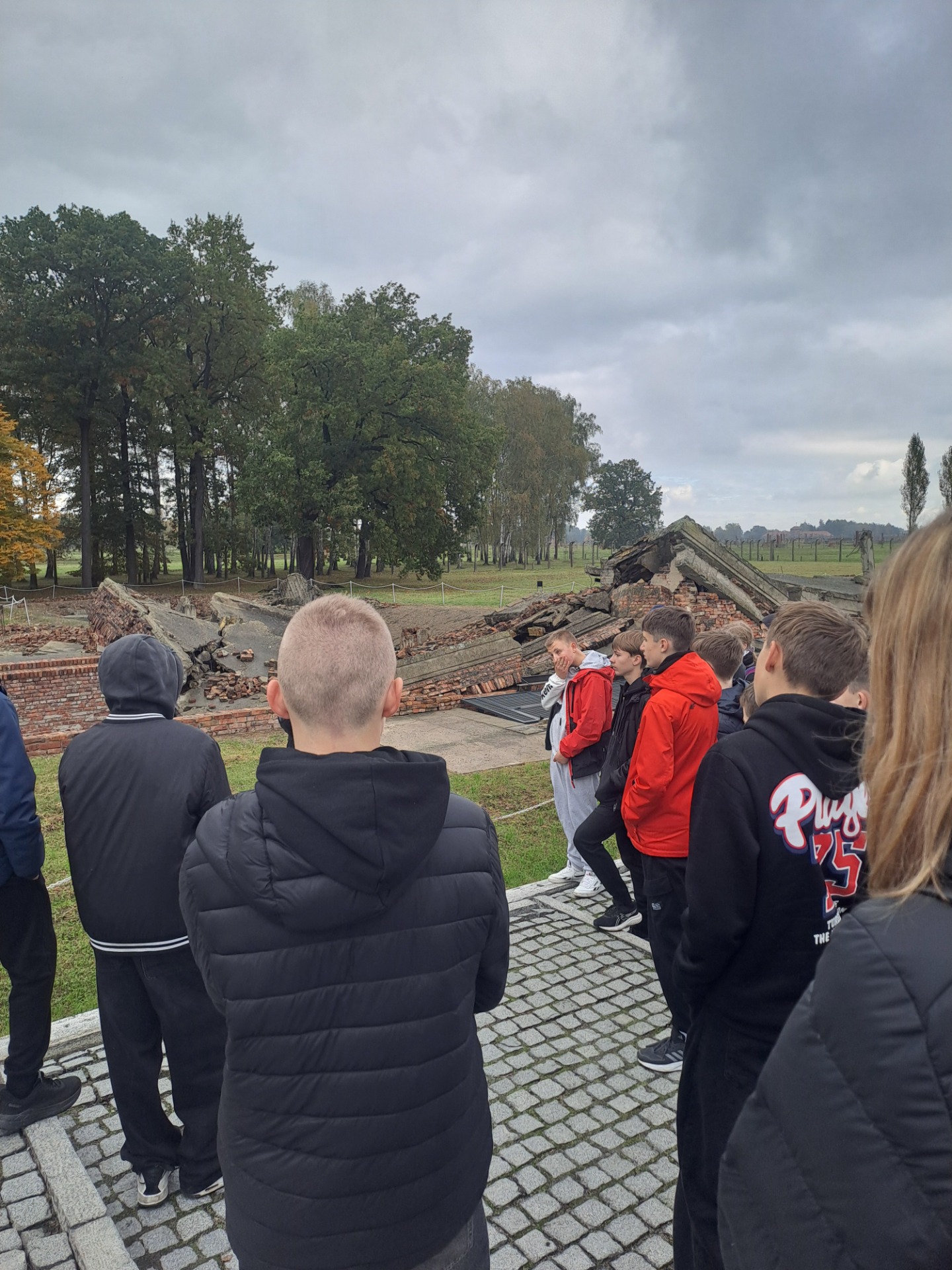 15 października uczniowie klasy 8 naszej szkoły udali się wraz ze swoimi rówieśnikami ze szkół podstawowych naszej gminy do byłego niemieckiego nazistowskiego obozu koncentracyjnego Oświęcim - Brzezinka. To miejsce, które nie pozostawia nikogo obojętnym. Wizyta w Miejcu Pamięci i Muzeum Auschwitz - Birkenau była dla nas wszystkich głębokim przeżyciem i ważną lekcją historii oraz człowieczeństwa. Już od momentu przekroczenia bramy z przekornym napisem "Arbeit macht frei" towarzyszyła nam cisza i refleksja nam przeszłością oraz nad tym, do czego może prowadzić nienawiść, nietolerancja i brak szacunku dla drugiego człowieka. Pani przewodnik w sposób rzeczowy i poruszający opowiadała nam o codziennym życiu więźniów, nieludzkich warunkach, głodzie, pracy ponad ludzkie siły oraz tragicznych losach Żydów, Polaków, Romów i przedstawicieli wielu innych narodowości. To doświadczenie pozostanie w naszej pamięci na długo.