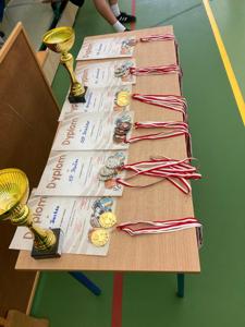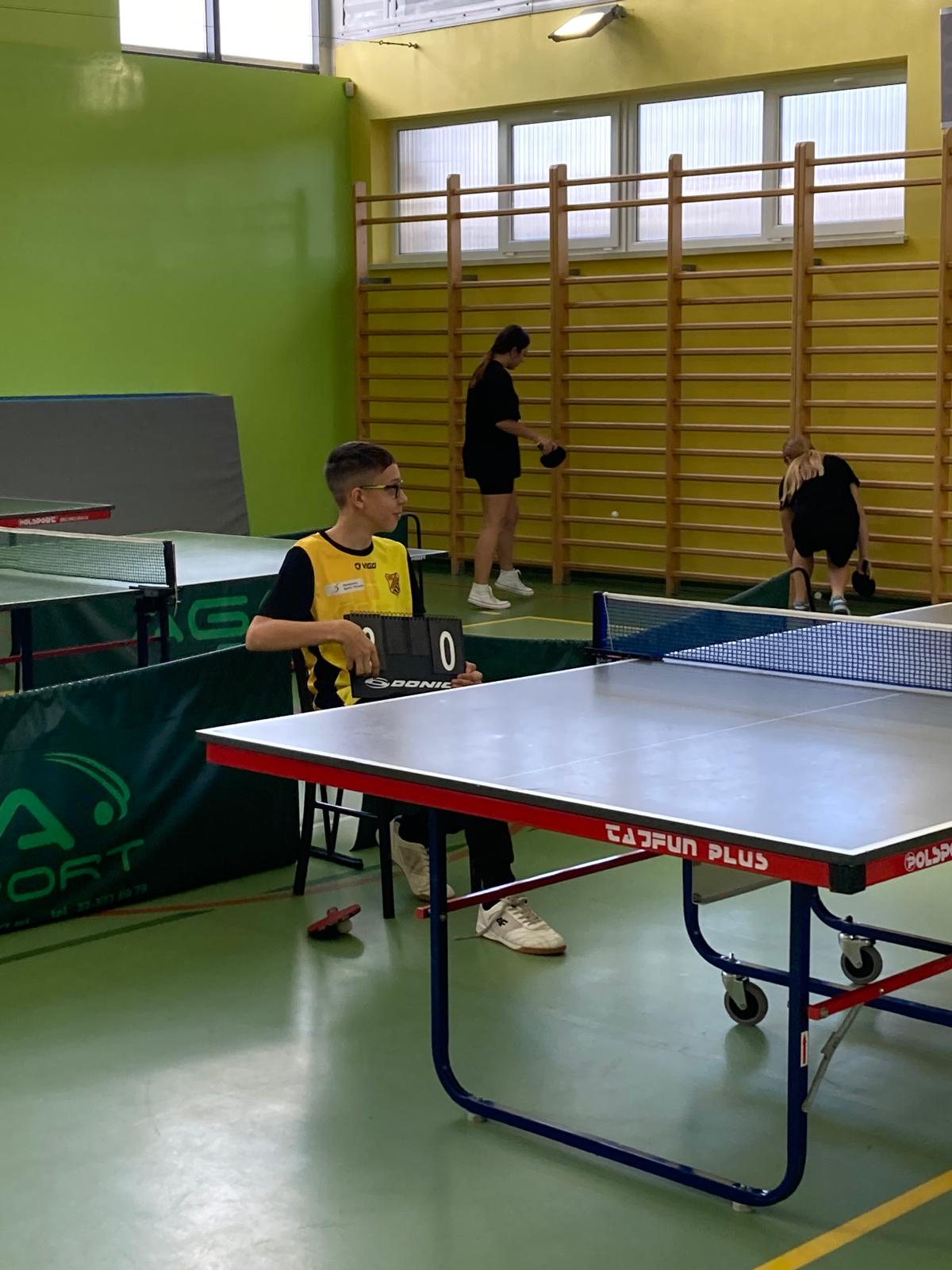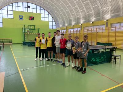 W dniu 27.10.2025r uczniowie naszej szkoły uczestniczyli w powiatowym turnieju tenisa stołowego, który odbył się w Szkole Podstawowej w Pawłowie. W zawodach uczestniczyły szkoły z Krzyżanowic, Szonowic, Tworkowa, Pawłowa i Rzuchowa, w kategorii klas VII- VIII dziewcząt i chłopców. Zawodnicy stoczyli gry indywidualne i zespołowe w deblu. Gra pokazała bardzo dobrą koordynację ruchową zawodników, refleks i zdolności strategiczne. Bardzo ważna była komunikacja i zgranie ze swoim partnerem, co pozwoliło naszym zawodniczkom i zawodnikom zdobyć brązowe medale. Jako drużyna zdobyliśmy miejsce III. Drużynę dziewcząt reprezentowały: Aleksandra Kowol, Żaneta Wilk i Paulina Krzyżok. Wśród chłopięcej grupy znaleźli się : Paweł Chłapek, Paweł Grochowski i Wojciech Kampka. Wszystkim zawodnikom gratulujemy sukcesu i sportowego ducha walki.