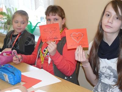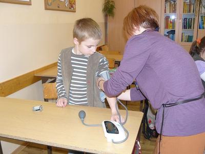 Corocznie ŚWIATOWY DZIEŃ ZDROWIA obchodzony jest 7 kwietnia. Tematem przewodnim na obecny rok jest - NADCIŚNIENIE TĘTNICZE, a przyświeca mu hasło - Zdrowe Bicie Serca. W związku z tym w naszym SK PCK odbyło się spotkanie warsztatowe, na którym uczniowie zapoznali się z celami tej akcji, klasyfikacją ciśnienia prawidłowego i nadciśnienia tętniczego, ryzykiem zachorowalności oraz konsekwencjami, jakie niesie ze sobą to schorzenie. W czasie dyskusji dzieci potrafiły trafnie wskazać te warunki konieczne, które należy spełnić, aby nie wejść w grono osób z ryzykiem nadciśnienia tętniczego. Następnie uczestnicy spotkania mieli okazję dokonać pomiaru ciśnienia, ze zwróceniem uwagi na zasady prawidłowego pomiaru w warunkach domowych. Końcowym zadaniem uczestników było wykonanie prac plastycznych, które trafnie i ciekawie podsumowały zajęcia, a ich ostateczny efekt zostanie zaprezentowany na gazetce ściennej, aby i inni uczniowie mogli poszerzyć wiedzę na temat naszego zdrowia.