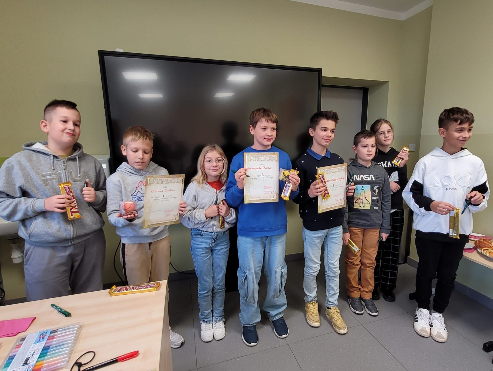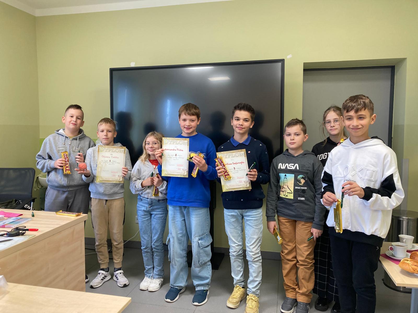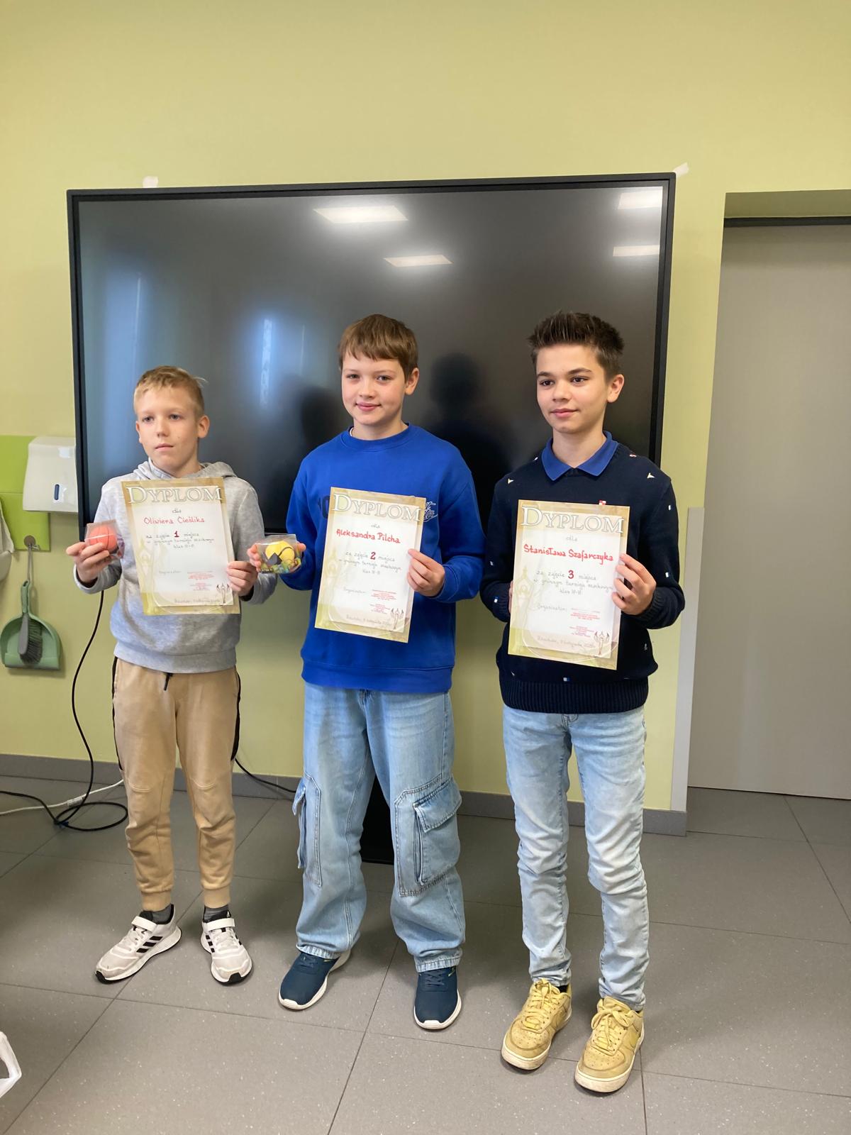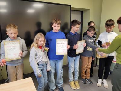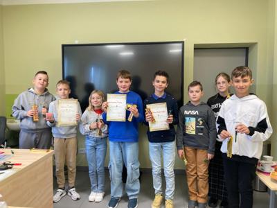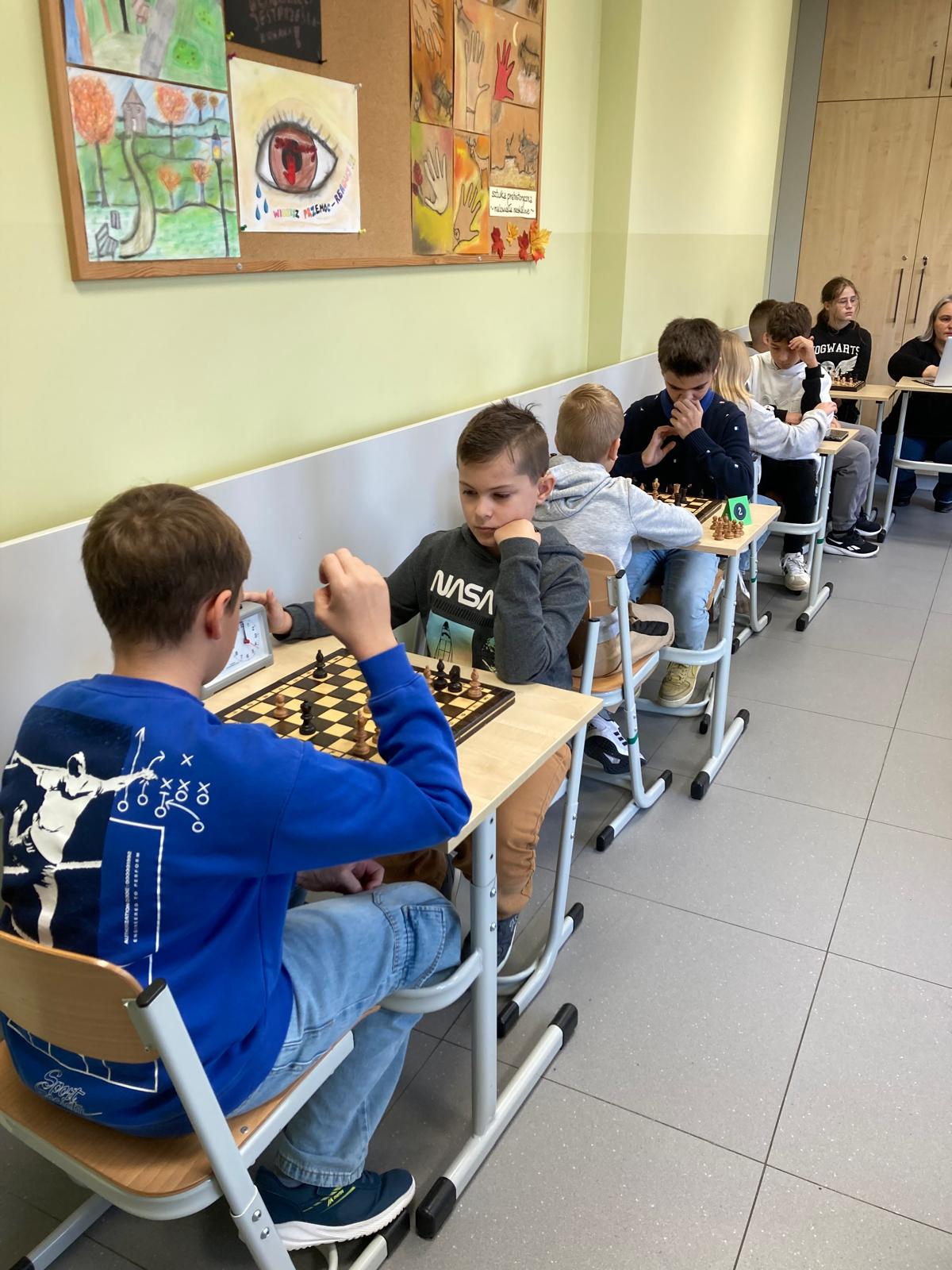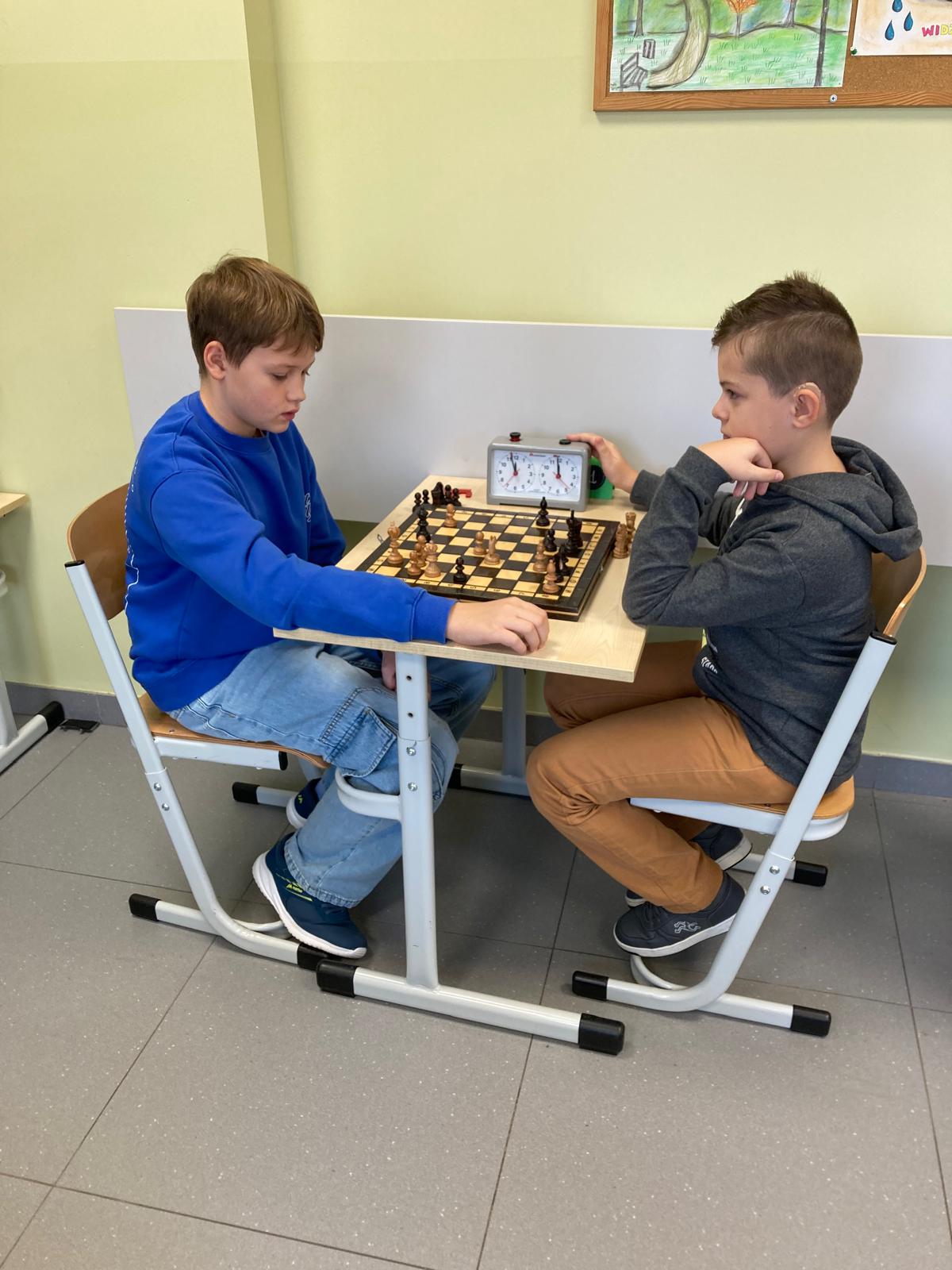 W dniu 5.11.2025r w naszej szkole odbył się gminny turniej szachowy klas 4-6. Zawodnicy stanęli do rywalizacji, wykazując się nie tylko dużą wiedzą szachową, ale również determinacją, spokojem i sportowym duchem. Po wielu partiach zostali wyłonieni zwycięzcy. Mistrzem został Oliwier Cieślik z Rzuchowa, na drugim miejscu uplasował się Aleksander Pilch z tej samej szkoły prezentując również bardzo wysoki poziom gry i taktycznego myślenia. Trzecie miejsce na podium zdobył Stanisław Szafarczyk ze szkoły w Kornowacu. Naszą szkołę reprezentowali jeszcze Alicja Mróz i Adrian Czogała, jako drużyna zdobyliśmy I miejsce. Wszyscy uczestnicy turnieju wykazali się dużym zaangażowaniem oraz umiejętnościami godnymi uznania. Gratulujemy zwycięzcom i dziękujemy wszystkim zawodnikom za udział!