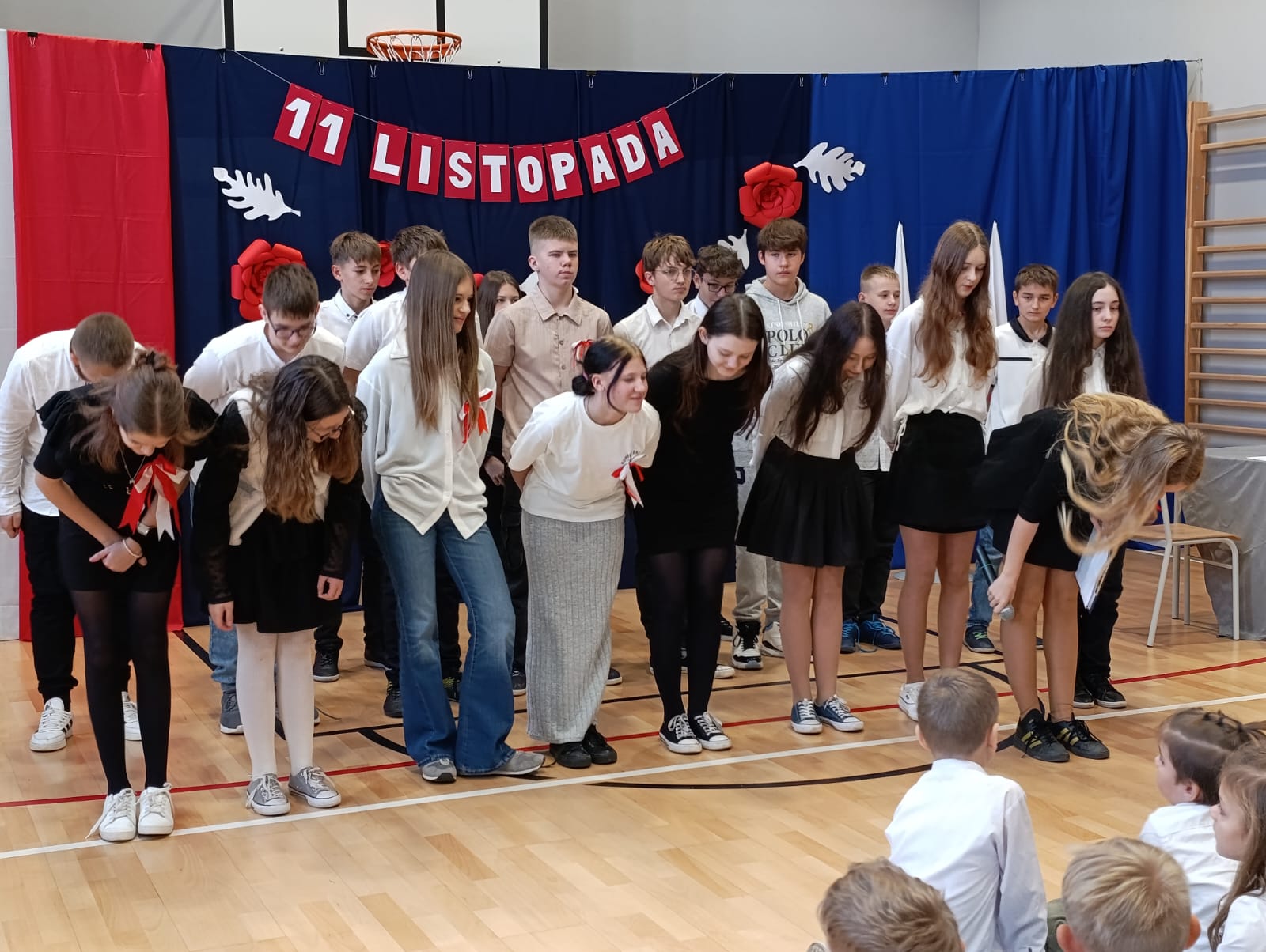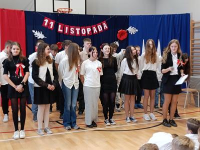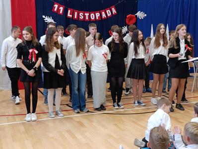 12 listopada w naszej szkole świętowaliśmy kolejną rocznicę odzyskania przez Polskę niepodległości. Zgromadziliśmy się tego dnia jako wspólnota szkolna na sali gimnastycznej na uroczystej akademii. Uczniowie naszej szkoły nie byli jedynie odbiorcami, lecz także współtwórcami występów. W części artystycznej wybrzmiały między innymi podnoszące na duchu patriotyczne utwory. Niech te obchody skłonią nas do pamiętania o naszej Ojczyźnie nie tylko od święta