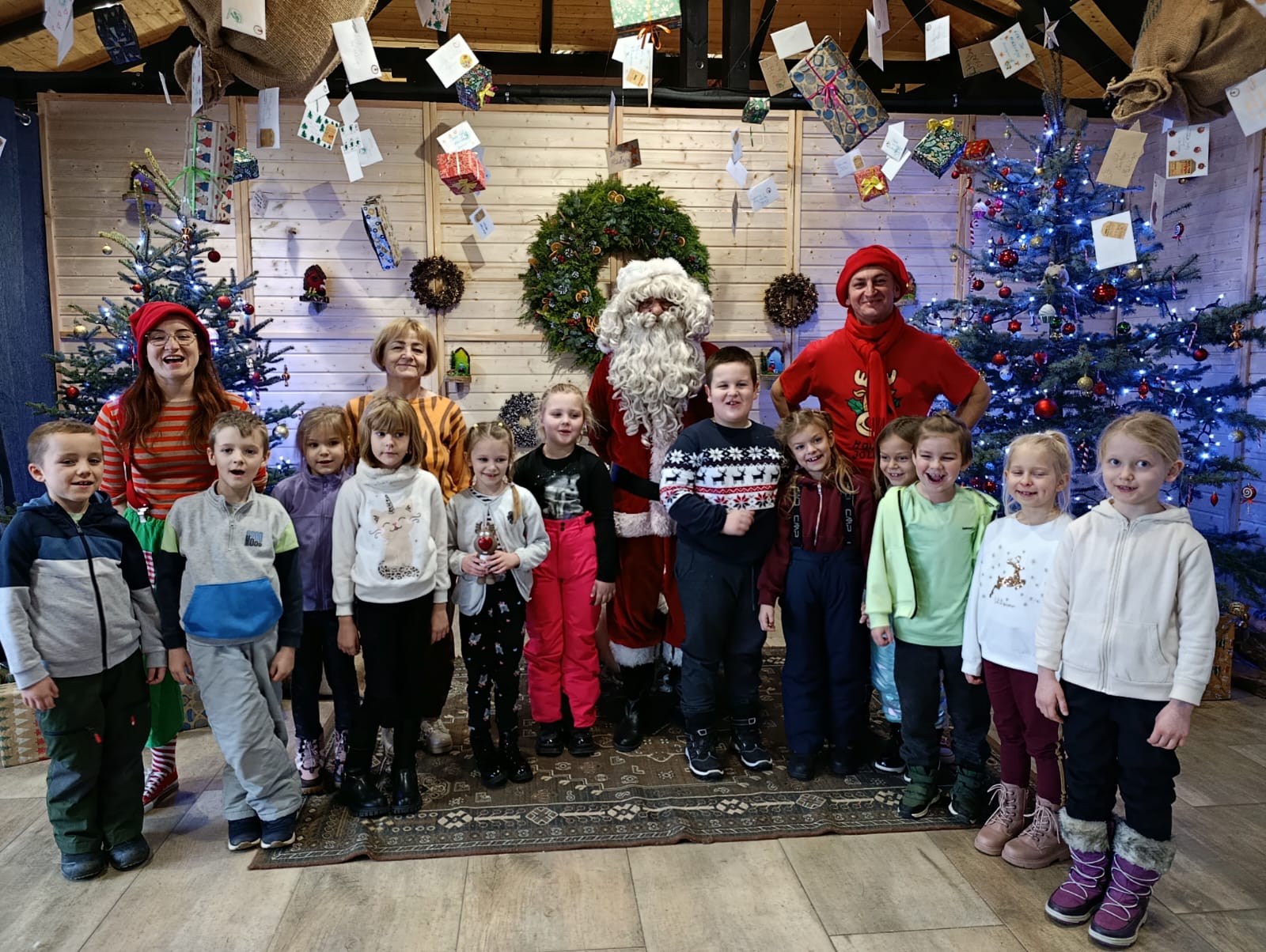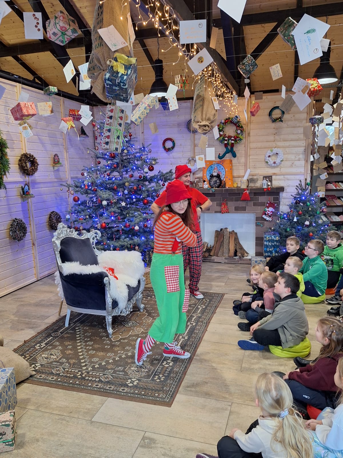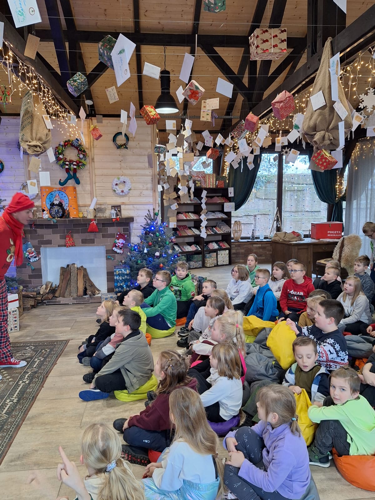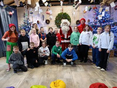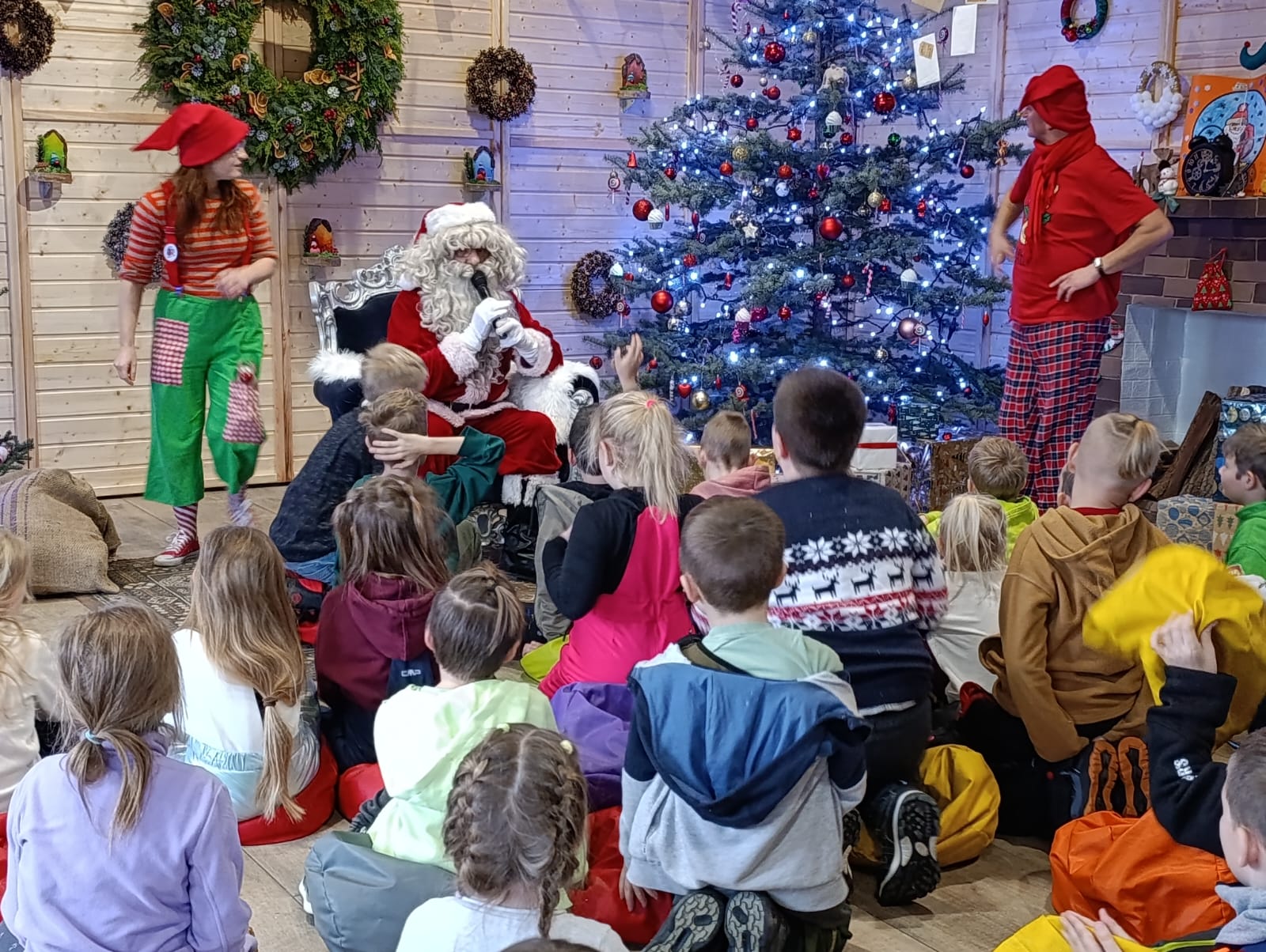 1 grudnia uczniowie klas I-IV mieli okazję uczestniczyć w niezwykłej podróży do Krasiejowa, by tam spotkać Św. Mikołaja. Po dotarciu na miejsce, przywitał wszystkich świąteczny wystrój obiektu - liczne udekorowane choinki, lampki, renifery z zaprzęgami oraz prezenty. Na początku dzieci miały okazję uczestniczyć w zimowych zabawach na śniegu - zjazdach na sankach i pontonach. Następnie była wizyta w kinie i projekcja krótkich filmów - bajek o tematyce świątecznej. Po wyjściu z kina na uczestników czekała kolejna niespodzianka. Tym razem dzieci udały się do ogromnej jaskini, gdzie radosne elfy przygotowały dla nich świąteczne zadania - ubieranie choinki, nakrywanie wigilijnego stołu, czy ,,pakowanie" elfa do worka z prezentami. Jak się okazało, to nie były wszystkie atrakcje wyjazdu. Kolejnym punktem programu było spotkanie z najważniejszą postacią tego miejsca - Św. Mikołajem, któremu towarzyszyły zabawne i psotne elfy. W burzliwej dyskusji gospodarz zadawał dzieciom wiele pytań nawiązujących do bezpiecznego i właściwego zachowywania się, opowiadał o swojej pracy i pracy elfów. Uwieńczeniem spotkania były klasowe zdjęcia z Mikołajem. Na zakończenie czekała wszystkich jeszcze jedna niespodzianka - warsztaty plastyczne i wykonanie przez dzieci świątecznych bombek wg własnego projektu. Po zjedzeniu smacznego obiadu, dzieci z radością odwiedziły jeszcze stoiska z pamiątkami. Wycieczka przyniosła wszystkim wiele niezapomnianych i miłych wrażeń. Z zadowoleniem i uśmiechem na twarzach, bezpiecznie wróciliśmy do domu.
