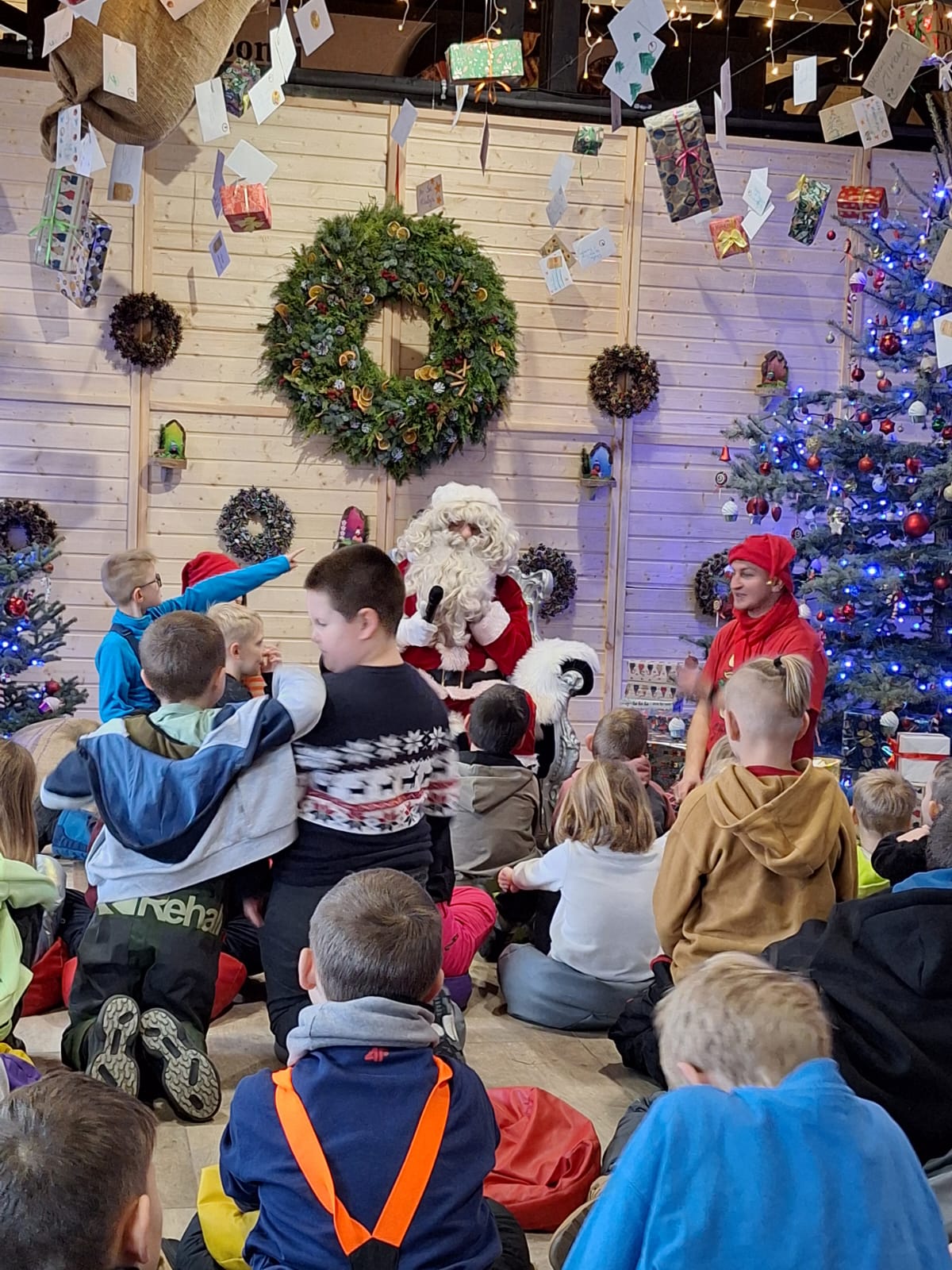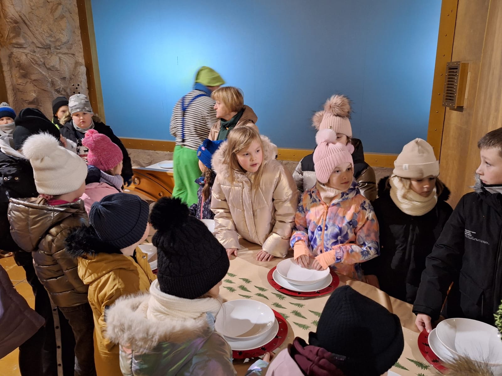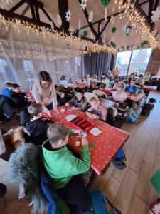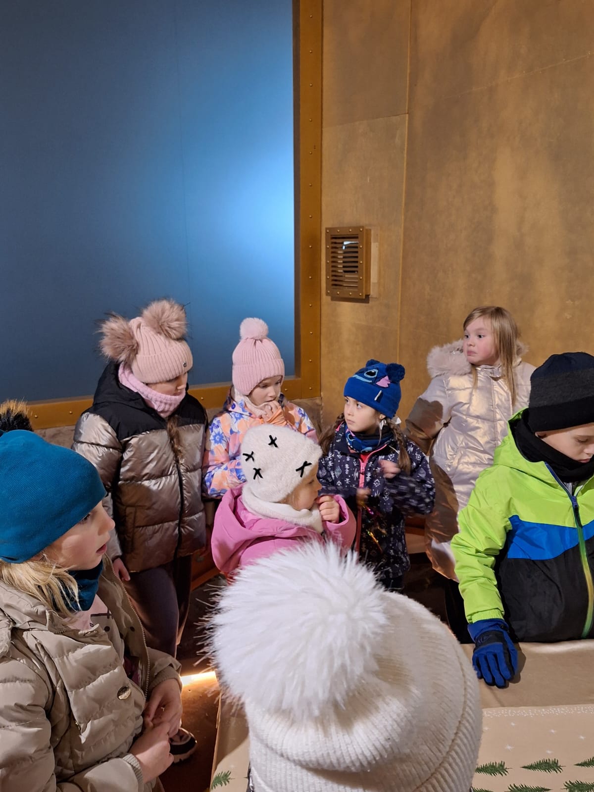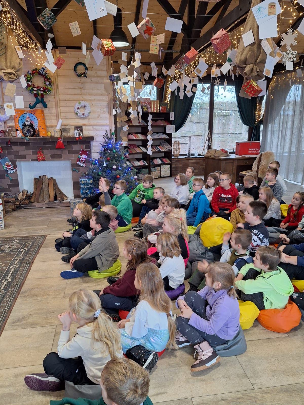 1 grudnia uczniowie klas I-IV mieli okazję uczestniczyć w niezwykłej podróży do Krasiejowa, by tam spotkać Św. Mikołaja. Po dotarciu na miejsce, przywitał wszystkich świąteczny wystrój obiektu - liczne udekorowane choinki, lampki, renifery z zaprzęgami oraz prezenty. Na początku dzieci miały okazję uczestniczyć w zimowych zabawach na śniegu - zjazdach na sankach i pontonach. Następnie była wizyta w kinie i projekcja krótkich filmów - bajek o tematyce świątecznej. Po wyjściu z kina na uczestników czekała kolejna niespodzianka. Tym razem dzieci udały się do ogromnej jaskini, gdzie radosne elfy przygotowały dla nich świąteczne zadania - ubieranie choinki, nakrywanie wigilijnego stołu, czy ,,pakowanie" elfa do worka z prezentami. Jak się okazało, to nie były wszystkie atrakcje wyjazdu. Kolejnym punktem programu było spotkanie z najważniejszą postacią tego miejsca - Św. Mikołajem, któremu towarzyszyły zabawne i psotne elfy. W burzliwej dyskusji gospodarz zadawał dzieciom wiele pytań nawiązujących do bezpiecznego i właściwego zachowywania się, opowiadał o swojej pracy i pracy elfów. Uwieńczeniem spotkania były klasowe zdjęcia z Mikołajem. Na zakończenie czekała wszystkich jeszcze jedna niespodzianka - warsztaty plastyczne i wykonanie przez dzieci świątecznych bombek wg własnego projektu. Po zjedzeniu smacznego obiadu, dzieci z radością odwiedziły jeszcze stoiska z pamiątkami. Wycieczka przyniosła wszystkim wiele niezapomnianych i miłych wrażeń. Z zadowoleniem i uśmiechem na twarzach, bezpiecznie wróciliśmy do domu.