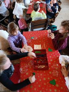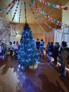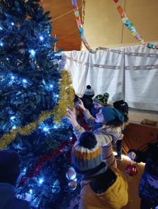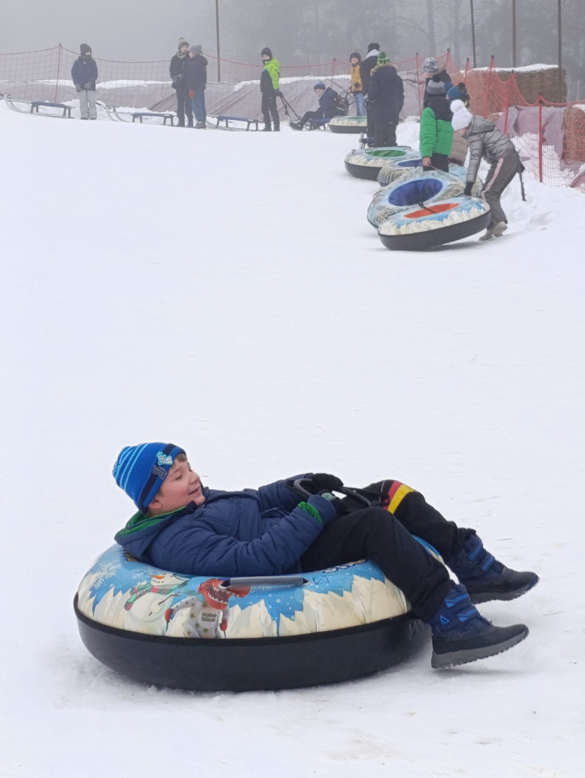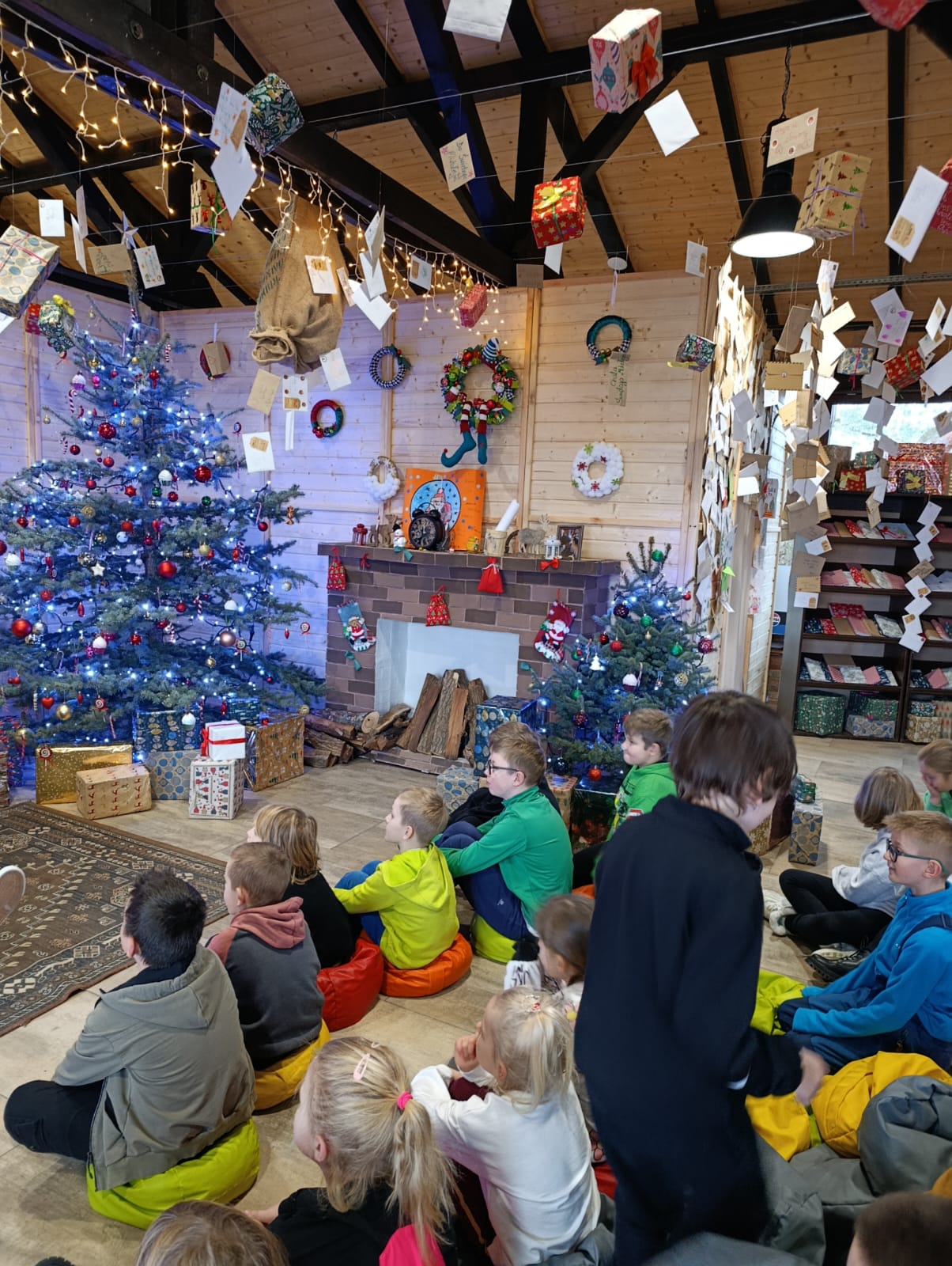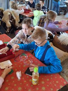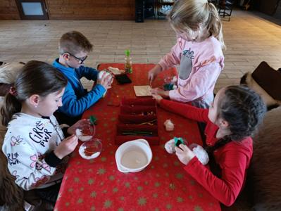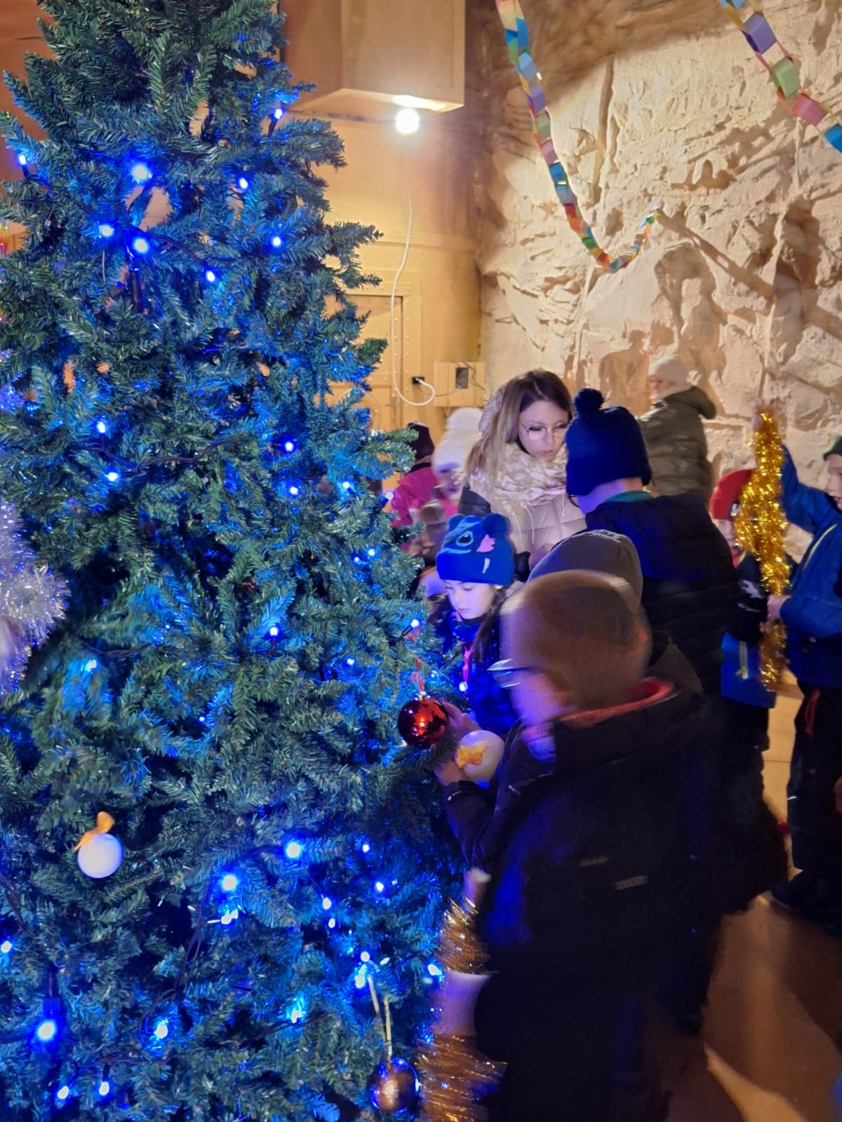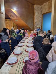 1 grudnia uczniowie klas I-IV mieli okazję uczestniczyć w niezwykłej podróży do Krasiejowa, by tam spotkać Św. Mikołaja. Po dotarciu na miejsce, przywitał wszystkich świąteczny wystrój obiektu - liczne udekorowane choinki, lampki, renifery z zaprzęgami oraz prezenty. Na początku dzieci miały okazję uczestniczyć w zimowych zabawach na śniegu - zjazdach na sankach i pontonach. Następnie była wizyta w kinie i projekcja krótkich filmów - bajek o tematyce świątecznej. Po wyjściu z kina na uczestników czekała kolejna niespodzianka. Tym razem dzieci udały się do ogromnej jaskini, gdzie radosne elfy przygotowały dla nich świąteczne zadania - ubieranie choinki, nakrywanie wigilijnego stołu, czy ,,pakowanie" elfa do worka z prezentami. Jak się okazało, to nie były wszystkie atrakcje wyjazdu. Kolejnym punktem programu było spotkanie z najważniejszą postacią tego miejsca - Św. Mikołajem, któremu towarzyszyły zabawne i psotne elfy. W burzliwej dyskusji gospodarz zadawał dzieciom wiele pytań nawiązujących do bezpiecznego i właściwego zachowywania się, opowiadał o swojej pracy i pracy elfów. Uwieńczeniem spotkania były klasowe zdjęcia z Mikołajem. Na zakończenie czekała wszystkich jeszcze jedna niespodzianka - warsztaty plastyczne i wykonanie przez dzieci świątecznych bombek wg własnego projektu. Po zjedzeniu smacznego obiadu, dzieci z radością odwiedziły jeszcze stoiska z pamiątkami. Wycieczka przyniosła wszystkim wiele niezapomnianych i miłych wrażeń. Z zadowoleniem i uśmiechem na twarzach, bezpiecznie wróciliśmy do domu.