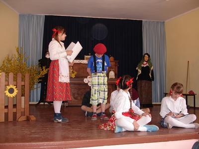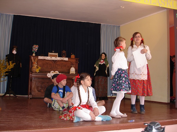"Gwara śląska to jądro polskiej mowy, to język Rejów i Kochanowskich..." Uczniowie naszej szkoły uczestniczyli w XIV Międzygminnym Konkursie Gwary w Pogrzebieniu "Pogodomy po naszymu". Swój repertuar zaprezentowali drugoklasiści oraz uczniowie klasy IV. Wystąpili w scenkach gwarowych, przedstawili monolog oraz zaśpiewali piosenki w gwarze śląskiej. Tym razem spotkali się z uczniami ze szkoły podstawowej z Pstrążnej, Kobyli i Pogrzebienia. Występy naszych uczniów zostały nagrodzone przyznaniem pierwszego miejsca za piosenkę "Obejrzycie wy dziewuchy" w grupie mlodszej oraz "Jak żech chodził do szkoły" w grupie starszej. Czwartoklasistka Edyta Gąsior otrzymała II miejsce za monolog "Siedym dziecek Francka Tydnia", zaś scenka "Na śląskim podwórku" w wykonaniu Wiktorii Kwiatkowskiej, Edyty Gąsior, Martyny Grela, Miłosza Musiolika, Łukasza Domańskiego, Kamila Jęczmionki i Mateusza Mandla zdobyła I miejsce. Uczniowie klasy drugiej za występ "Dwa kamraty" otrzymali III miejsce. Wszystkim uczestnikom konkursu gratulujemy.