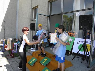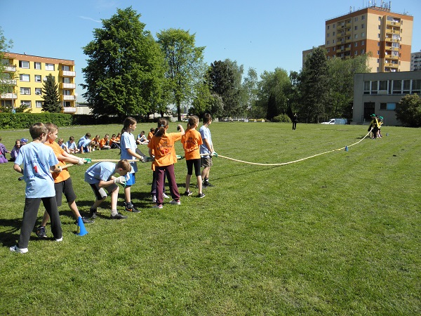 14 maja 2013 roku grupa uczniów z Rzuchowa wraz z opiekunami udała się do zaprzyjaźnionej szkoły w Novým Jičínie. Jako że projekt, który wspólnie realizujemy, nosi tytuł „Polsko – czeska podróż w czasie”, przenieśliśmy się na moment do starożytnej Grecji, aby spróbować swoich sił w olimpiadzie sportowej. Na początku powitano wszystkich uczestników, a Dyrektor tamtejszej szkoły zapalił symboliczny znicz olimpijski i przekazał go uczniowi otwierającemu pochód. Za nim ustawiły się trzy uczennice w strojach greckich, po czym nastąpił przemarsz reprezentantów obu szkół z transparentami. Uczniowie rywalizowali w kilku konkurencjach, które dostarczyły im wiele radości i uśmiechu, dzieci prezentowały prawdziwie sportowe postawy i konkurowały w duchu zasad fair play. Najwięcej emocji przyniosły rozgrywki drużynowe w dwa ognie, w których wygrała drużyna z Czech oraz przeciąganie liny, w których zwycięstwo odniosła drużyna z Polski. Gry i zabawy integracyjne przygotowane przez czeskiego partnera również były bardzo interesujące. Uczniowie mieli okazję do dialogu i świetnie tę okazję wykorzystali. Zwycięzcy zostali usytuowani na przygotowanym podium i obdarowani wspaniałymi nagrodami. Na zakończenie wszyscy uczestnicy olimpiady otrzymali drobne upominki i dyplomy. Mamy nadzieję, że kolejne spotkanie będzie również udane i przyniesie uczestnikom wiele zadowolenia.