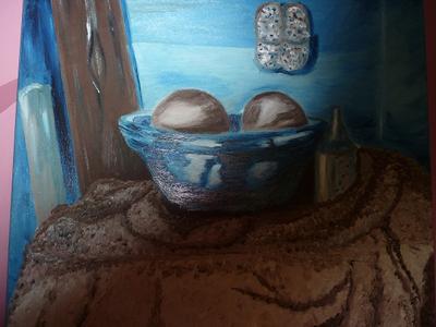Na początku spotkania pani Edyta poczęstowała nas pysznymi pączkami i herbatą oraz opowiedziała nam o swoim zamiłowaniu do sztuki i zwierząt. Już w dzieciństwie zaczęła malować; uczyła się od swego ojca. Następnie rozpoczęła studia plastyczne, które przerwała, ponieważ musiała zająć się domem i dziećmi. Kiedyś projektowała torebki, a teraz robi biżuterię. Namalowała kilka obrazów. Pani Edyta upiększa swój ogród budując oczko wodne i donice z kamyczków, planuje budowę fontanny.