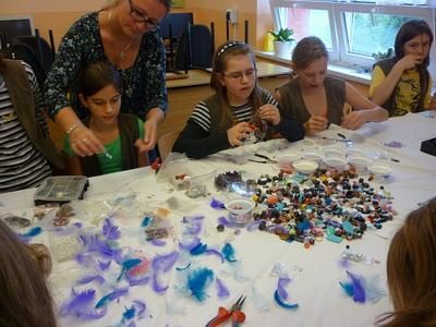 5 czerwca pani Edyta przeprowadziła w naszej szkole warsztaty wyrobu biżuterii dla dwóch grup - młodszej i starszej. Uczniowie byli zachwyceni zajęciami. Każde dziecko własnoręcznie zrobioną biżuterię mogło zabrać do domu. Serdecznie dziękujemy pani Edycie za przeprowadzenie warsztatów i liczymy na dalszą współpracę.