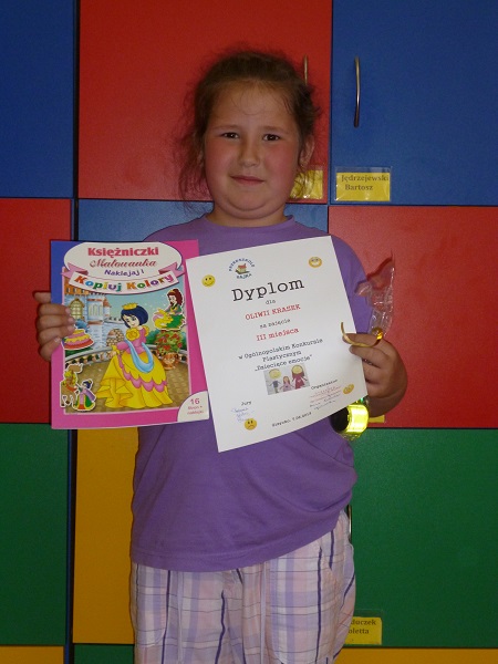 Przedszkole w Rzuchowie wzięło udział w ogólnopolskim konkursie pod hasłem "Dziecięce emocje". Konkurs organizowało przedszkole w Giżycku. Celem konkursu było promowanie twórczości dziecięcej, rozwijanie zainteresowań plastycznych oraz rozpoznawanie i rozumienie swoich emocji i uczuć. Kryteriami oceny były: oryginalność pracy, samodzielność wykonania, walory artystyczne i estetyka. Rozstrzygnięcie konkursu nastąpiło 7 czerwca. Sześcioletnia Oliwia Krasek z naszego przedszkola zajęła III miejsce. W nagrodę otrzymała dyplom, książki i znaczki odblaskowe, z czego się bardzo ucieszyła. Dyplomy uczestnictwa oraz odblaski otrzymali również Bartosz Jędrzejewski, Jakub Mrozek, Julia Grela oraz Wioletta Hajduczek.