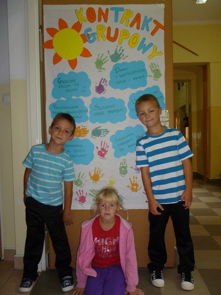 Wakacje, wakacje … i już jesteśmy w przedszkolu! O rok starsi, poważniejsi i z nowymi kolegami. W tym roku szkolnym w naszej grupie bawi się i uczy wspólnie 25 dzieci –11 uśmiechniętych dziewczynek oraz 14 wesołych chłopców. Wszyscy powoli zaaklimatyzowali się w nowym otoczeniu. Pierwsze dni upłynęły nam na poznawaniu siebie nawzajem oraz na ustalaniu zasad obowiązujących w grupie. Wspólnie stworzyliśmy kodeks przedszkolaka, który każdy z nas podpisał. Zapoznaliśmy się także z salą zabaw, jadalnią oraz placem zabaw. Przed nami jeszcze wiele atrakcji i dużo pracy, dlatego też wszystkim dzieciom życzymy dużo zapału i wytrwałości w zdobywaniu wiedzy.