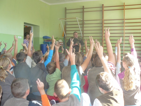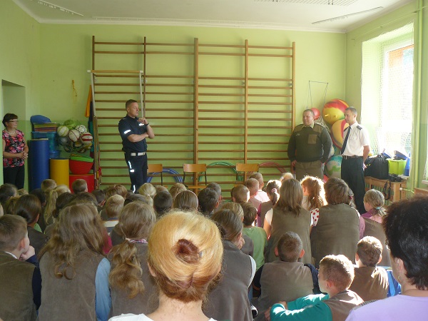 Raciborscy policjanci we współpracy z funkcjonariuszem Straży Granicznej odwiedzili Szkołę Podstawową w Rzuchowie. Tematem spotkania było bezpieczeństwo najmłodszych w ruchu drogowym oraz zasady bezpiecznego poruszania się poza granicami kraju. Dzieci zostały zapoznane z podstawowymi zasadami poruszania się pieszych i rowerzystów po drogach oraz informacjami dotyczącymi dokumentu tożsamości potrzebnego w przypadku wyjazdu za granicę oraz konsekwencjami jego braku. Na koniec spotkania odbył się konkurs wiedzy, w którym uczniowie za trafne odpowiedzi otrzymywali nagrody w postaci odblasków, maskotek pancernika, smyczy, map i innych gadżetów.