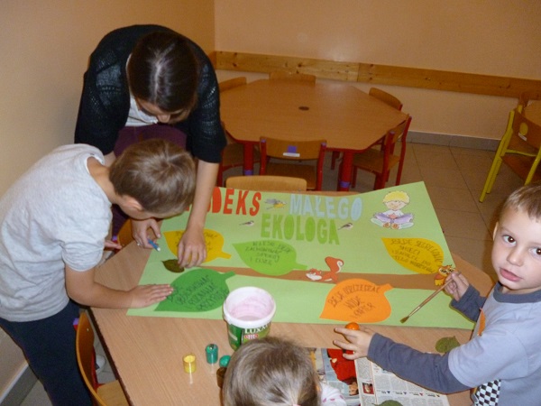 10 października przedszkolaki z Rzuchowa włączyły się w obchody Święta Drzewa. Już kilka dni wcześniej wybraliśmy się do lasu, by podziwiać jego piękno. Wszyscy z zaangażowaniem poszukiwali skarbów spadających z drzew i rosnących pod nimi oraz wsłuchiwali się w odgłosy lasu. Zajęcia dydaktyczne miały na celu uwrażliwienie dzieci na piękno przyrody oraz uzmysłowienie im ich znaczenia w kształtowaniu środowiska naturalnego. Na zajęciach dzieci poznały budowę drzewa oraz jego rolę w życiu ludzi i zwierząt. Wykonały także drzewka wykorzystując odpady. Przedszkolaki obiecały przestrzegać wspólnie stworzonego kodeksu młodego ekologa oraz złożyli uroczyste przyrzeczenie prawdziwych przyjaciół przyrody. Uwieńczeniem całego dnia było zasadzenie trzech drzewek w przedszkolnym ogródku. Jak na prawdziwych ekologów przystało, dzieci będą się nimi opiekować i je pielęgnować. Mamy nadzieję, że na posadzonych przez nas drzewkach znajdzie schronienie niejeden ptaszek, a nasze dzieci zostaną prawdziwymi miłośnikami przyrody.