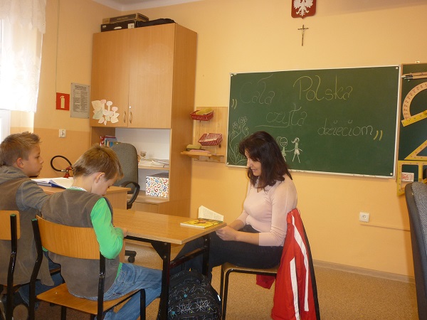 Rodzice uczniów klasy piątej włączyli się do akcji "Cała Polska czyta dzieciom". Raz w miesiącu będą gościć na lekcji wychowawczej i czytać dzieciom wybraną przez siebie książkę. Akcję rozpoczęła ciocia Wiktorii Kwiatkowskiej - pani Lucyna Florek, która przeczytała dwa rozdziały "Alicji w Krainie Czarów". Po wysłuchaniu fragmentów książki dzieci zgodnie stwierdziły, że zawiera ona wiele elementów ciekawych i humorystycznych, których w ogóle nie oddaje film. Uczniowie postanowili, że sięgną po tę książkę.