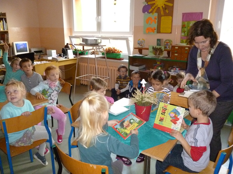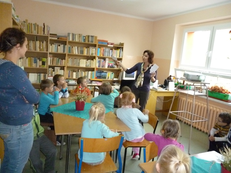 Wiek przedszkolny jest bardzo dobrym czasem na rozbudzanie zainteresowań czytelniczych., dlatego też 24 października przedszkolaki z Rzuchowa odwiedziły bibliotekę szkolną. Podczas naszej wizyty dowiedzieliśmy się, co to jest biblioteka, na czym polega praca bibliotekarza oraz jak należy obchodzić się z książkami. Pani Tatiana zapoznała nas także ze sposobem wypożyczania książek, korzystania z księgozbioru dostępnego w bibliotece oraz omówiła akcję „Narodowe Czytanie”, która zainicjowana jest przez Prezydenta Rzeczypospolitej Polskiej Bronisława Komorowskiego. Następnie w ramach tejże akcji dzieci z ogromnym zainteresowaniem wysłuchały trzech wierszy Aleksandra Fredry. Na zakończenie tego pełnego wrażeń spotkania pani bibliotekarka wręczyła przedszkolakom wydrukowane teksty wierszy, które mogły zabrać do domu.