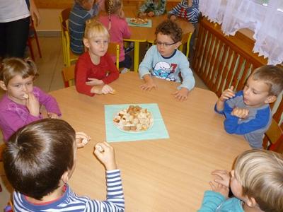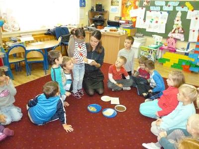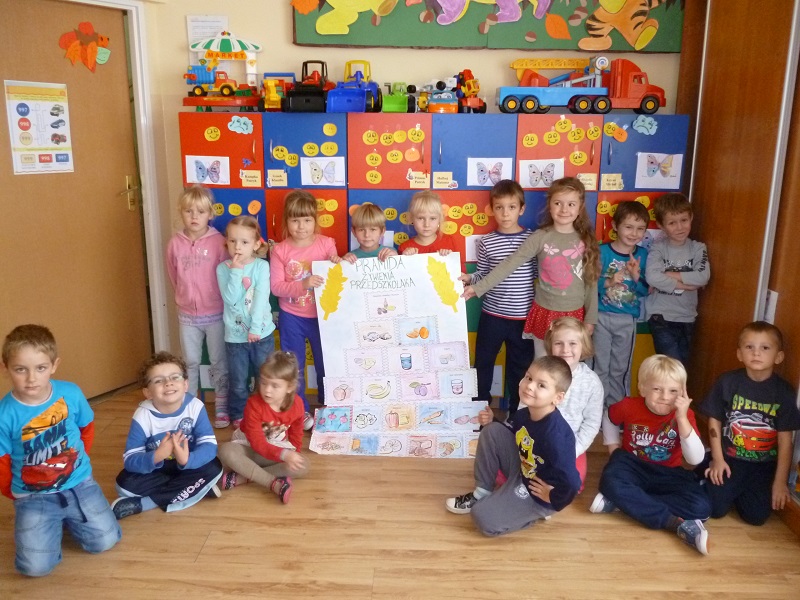 Nasze przedszkole w dniach 21 – 25 października, już po raz kolejny wzięło udział w ogólnopolskiej akcji prozdrowotnej o charakterze edukacyjnymAkademia ZdrowegoPrzedszkolaka. Hasło przewodnie V już edycji akcjiPiramida Żywienia Przedszkolakabrzmiało:Zboża zjadamy, energię z nich mamy. Głównym celem akcji było zapoznanie dzieci z dwoma piętrami piramidy; najważniejszym, na którym znajdują się produkty zbożowe (chleb, kasza, ryż, makaron), które są podstawą żywienia oraz piętrem, które stanowi uzupełnienie tych produktów i wzbogaca ich wartości odżywcze (nasiona strączkowe, orzechy i tłuszcze). Oba piętra są bardzo ważne z punktu widzenia prawidłowego odżywiania.Dzieci miały okazję zobaczyć różne rodzaje produktów, dowiedziećsię, z czego są zrobione, a nawet ich spróbować. Przedszkolaki wykonywały naszyjniki z makaronu, tworzyły arcydzieła z ugotowanego na mleku ryżu, bawiąc się w piekarzy, „wypiekały” chleb z masy solnej. Wybraliśmy się także w wirtualną wyprawę do miejsca, gdzie wypieka się pieczywo. Przedszkolaki miały okazję zobaczyć piekarnie starszej generacji oraz te nowoczesne, a także cały proces powstawania chleba. Dzieci z wielkim entuzjazmem uczestniczyły we wszystkich zajęciach. Warsztaty przebiegały w twórczej i radosnej atmosferze.Zdrowo się odżywiając, dzieci na pewno będą się dobrze rozwijały, a także miały mnóstwo energii do zabawy.