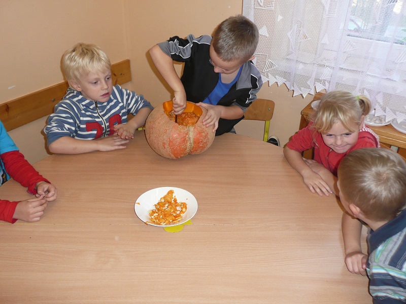 31 października 2013 r. w przedszkolu w Rzuchowie odbyły się zajęcia z języka angielskiego na temat święta Halloween, które przywędrowało do nas z Anglii i Stanów Zjednoczonych. Głównym celem zajęć było rozbudzenie zainteresowań poznawczych innymi krajami oraz integracja wszystkich dzieci poprzez wspólną zabawę. Podczas tych zajęć przedszkolaki poznały historię powstania Halloween oraz słownictwo związane z tym tematem. Ponadto brały udział w ciekawych zabawach ruchowych takich jak: „Straszny duszek”, „Owocowe wyzwanie”, „ Mumia” oraz „Taniec na miotle”. Następnie wszyscy wspólnie wykonaliśmy lampion z dyni, który posłużył do dekoracji naszej sali. Zajęcia przebiegły w wesołej i przyjaznej atmosferze. Dzieci poszerzyły swoją wiedzę na temat obyczajów państw anglojęzycznych i świetnie razem się bawiły.