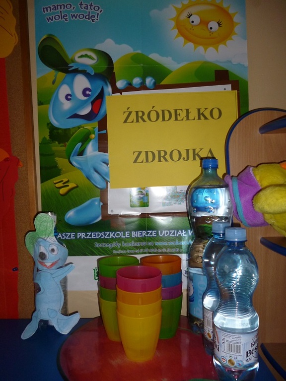Przedszkole w Rzuchowie już po raz drugi przystąpiło do ogólnopolskiej kampanii „Mamo, tato, wolę wodę!", której głównym celem jest podkreślenie roli wody w codziennej diecie dziecka oraz kształtowanie prawidłowych nawyków żywieniowych wśród przedszkolaków. Partnerami merytorycznymi „Mamo, tato, wolę wodę!” są Instytut Żywności i Żywienia oraz Instytut Matki i Dziecka. Głównym bohaterem kampanii jest wodna postać - sympatyczny Zdrojek, który wprowadza dzieci w świat wody. I to właśnie razem ze Zdrojkiem w listopadzie przedszkolaki z Rzuchowa poznały zasady zdrowego odżywiania, poszerzyły swoją wiedzę na temat roli wody w przyrodzie oraz poznały jej właściwości, zastosowania i sposoby oszczędzania. Treści programu ,,Mamo, tato, wolę wodę!” zawarły się w czterech jednostkach tematycznych: "Wolę wodę, bo daje życie", "Wole wodę, bo daje zdrowie i siłę", "Wolę wodę, bo jest bezcenna", "Wolę wodę, bo jest ważna". Zajęcia były bardzo ciekawe i cieszyły się ogromnym zainteresowaniem ze strony przedszkolaków, dlatego też serdecznie zachęcamy rodziców do wspólnej zabawy z dzieckiem w serwisie www.wolewode.pl, gdyż można w nim znaleźć mnóstwo ciekawych artykułów, interesujących gier interaktywnych oraz posłuchać bajek edukacyjnych zachęcających do picia wody. Zadbajmy wspólnie o zdrowie naszych dzieci!!!