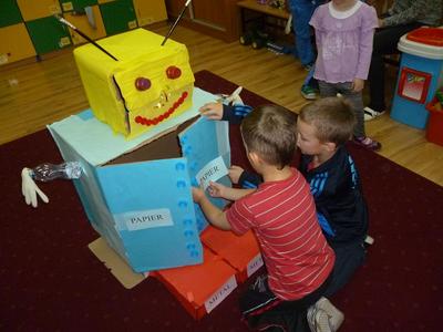 Przedszkole w Rzuchowie bierze udział w Wielkim Konkursie Ekologicznym pt: „Drugie życie śmieci” organizowanym przez serwis dla dzieci Buliba.pl. Honorowym patronem konkursu jest Ministerstwo Środowiska. Głównym celem akcji jest zainteresowanie dzieci ideą powtórnego wykorzystywania odpadów. W ramach konkursu przedszkolaki skonstruowały robota o nazwie „Pożeracz śmieci”. Do wykonania pracy użyliśmy: 4 kartonowe pudła, 2 butelki o pojemności 0,5l, 2 jednorazowe rękawiczki, plastikowe nakrętki, zniszczone pędzle, kolorowy papier i bibułę. Główną ideą naszej pracy jest zachęcenie dzieci do segregowania odpadów oraz do twórczej zabawy. Serdecznie zachęcamy wszystkich do oddania swojego głosu na naszą pracę. Głosowanie na prace konkursowe rozpocznie się 28.11. 2013 r. o godz. 12.00 i będzie trwało do godziny 23.59 dnia 03.12. 2013r. Na prace konkursowe może glosować każda osoba będąca użytkownikiem serwisu buliba.pl. Na jedną pracę można oddać 3 głosy. Szczegółowe zasady głosowania oraz harmonogram konkursu znajdą Państwo na stornie www.buliba.pl. Pamiętajmy, że im więcej oddanych głosów, tym większa szansa na wygraną!