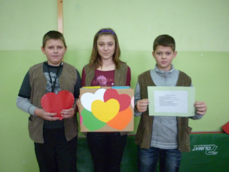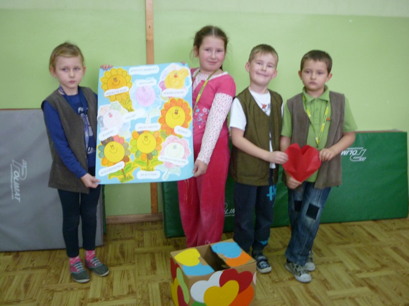 W naszej szkole ,,Dzień Życzliwości" obchodziliśmy już kolejny raz. Co roku z tej okazji dla poszczególnych grup klasowych przygotowujemy ciekawe akcje - zadania, tematyką związane z tym świętem. Zaczęliśmy już wczesnym rankiem 21 listopada, aby móc wszystkim przybywającym w nasze szkolne progi wręczyć ,,słodkie kwiatki" i życzliwe pozdrowienia. Przez cały kolejny tydzień uruchomiona została ,,szkolna poczta życzliwości i pozdrowień", a poszczególne klasy wykonywały ciekawe prace plastyczno - techniczne o takiej tematyce: