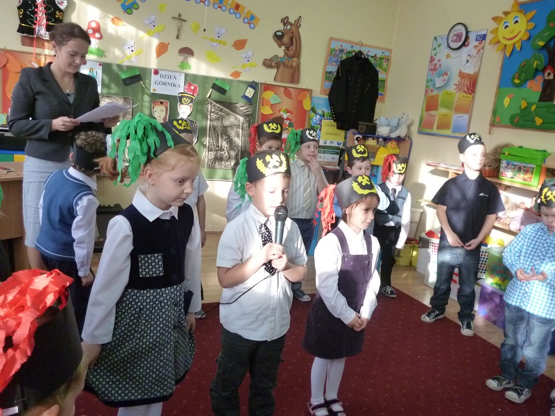 Dzień Górnika to jedna z wielu uroczystości, która już na stałe wpisała się w kalendarz wydarzeń Publicznego Przedszkola w Rzuchowie. Tradycyjnie 4 grudnia do przedszkola przybyli górnicy, którzy opowiedzieli nam o swojej trudnej i niebezpiecznej pracy. Zapoznali nas ze swoim strojem, w skład którego zalicza się m.in. czako, mundur galowy, pióropusz. Mieliśmy także okazję zobaczyć różne odznaczenia górnicze, np. szpadę dla zasłużonych górników. Następnie dzieci przedstawiły program artystyczny, na który złożyły się wiersze, piosenki oraz regionalne tańce śląskie "Grozik" i "Trojak". Na zakończenie odśpiewaliśmy STO LAT, wręczyliśmy górnikom piękne laurki i kwiatki oraz zaprosiliśmy ich na słodki poczęstunek. Nasze spotkanie z górnikami upłynęło nam w miłej i radosnej atmosferze. Dzięki temu spotkaniu dzieci nie tylko pogłębiły swoją wiedzę, ale też nauczyły się dziękować i szanować trud oraz pracę innych.