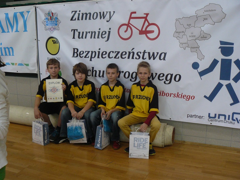 Uczniowie Zespołu Szkolno- Przedszkolny w Rzuchowie startowali w II Zimowym Turnieju Bezpieczeństwa Ruchu Drogowego, który odbył się w hali sportowej Rafako w Raciborzu. Impreza została przygotowana wspólnie przez Komendę Powiatową Policji w Raciborzu, ŚMOSG, WOPR, OSiR a także Starostwo Powiatowe i Urząd Miasta Racibórz. W turnieju wystartowało 15 drużyn składających się z czterech zawodników klas 4-6 z Raciborza i z terenu całego powiatu. Każdy zawodnik z danej drużyny wziął udział w jednej spośród konkurencji: test wiedzy z zakresu bezpieczeństwa w ruchu drogowym i obiektach architektonicznych powiatu raciborskiego, jazda rowerem na czas, jazda rowerem po torze przeszkód, strzelanie do tarczy przy użyciu trenażera laserowego. O udziale członka drużyny w danej konkurencji decydowało losowanie przeprowadzone przez sędziów. Naszą szkołę reprezentowali uczniowie: Szymon Murański (jazda rowerem po torze przeszkód), Łukasz Domański (test wiedzy z zakresu bezpieczeństwa w ruchu drogowym i obiektach architektonicznych powiatu raciborskiego), Miłosz Musiolik (jazda rowerem na czas), Dawid Krzuś (strzelanie do tarczy). Drużynowo zajęliśmy VI miejsce.
