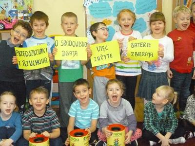 Zużyte baterie wyrzucane w sposób niekontrolowany stanowią ogromne zagrożenie dla środowiska, ponieważ zawarte w nich substancje mogą zanieczyszczać glebę i wodę. Aby więc uświadomić dzieciom konieczność segregowania odpadów niebezpiecznych już po raz kolejny przedszkole w Rzuchowie przyłączyło się do ogólnopolskiej akcji zbiórki zużytych baterii. Głównym celem tej akcji jest promowanie prawidłowych postaw w zakresie gospodarowania odpadami. Od września w naszej sali stoją trzy specjalne pojemniki, które po