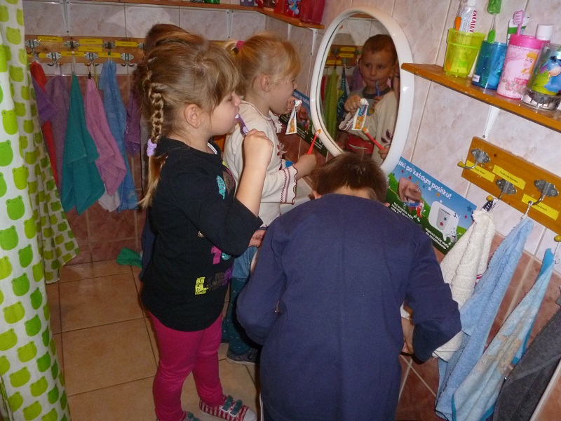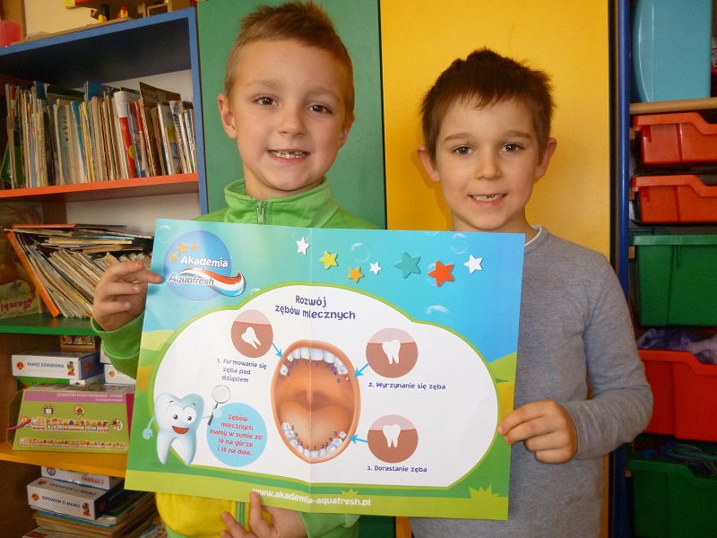Przedszkole w Rzuchowie już po raz kolejny bierze udział w Ogólnopolskim Programie Edukacji Zdrowotnej „Akademia Aquafresh”, którego głównym celem jest wykształcenie w dzieciach nawyku dbania o higienę jamy ustnej. W ramach realizacji programu przedszkolaki uczestniczyły w ciekawych zajęciach, na których uczyły się, jak prawidłowo czyścić ząbki; dowiedziały się, jak codzienna dieta wpływa na stan zdrowia zębów, skąd się biorą zęby oraz jak walczyć z niedobrym „robaczkiem-próchniaczkiem”. Ponadto nabyły umiejętność określania stopnia zużycia szczoteczki do zębów oraz uczyły się, jak dzielnie stawić czoła swoim lękom przed wizytą u dentysty. Dzieci dostały też do domu miesięczną tabelę mycia zębów, którą miały wypełnić w domu, a przynosząc ją z powrotem do przedszkola wypełnioną, dostawały odznakę Billego. Program ten wzbudził wiele uśmiechu i radości wśród dzieci. Pamiętajmy jednak, iż sama edukacja w przedszkolu nie wystarczy, edukacja z zakresu dbania o higienę jamy ustnej powinna być kontynuowana w domu! Zadbajmy wspólnie o zdrowe uśmiechy naszych dzieci.