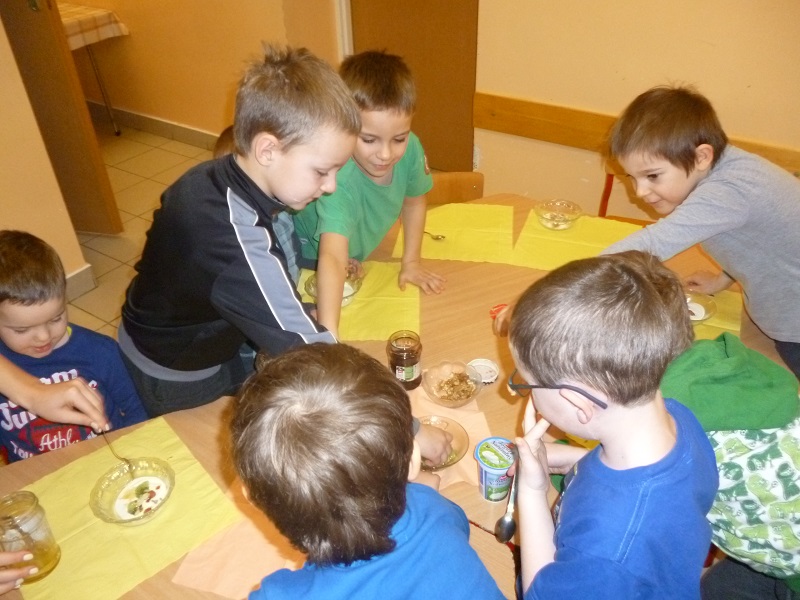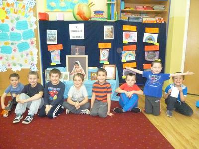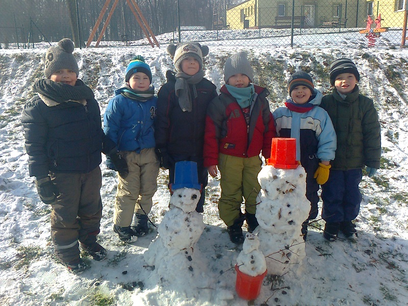 II tydzień ferii dobiegł końca, lecz pozostały po nim wspaniałe wspomnienia. Przenieśliśmy się w świat dziecięcych marzeń. Przedszkolaki zastanawiały się, kim chciałyby zostać w przyszłości. By im to ułatwić, przybliżyliśmy sobie kilka zawodów. Pierwszego dnia ku uciesze wszystkich chłopców jak i dziewczynek, wcieliliśmy się w sportowców. Rozmawialiśmy na temat różnych dyscyplin sportowych, przedszkolaki wesoło bawiły się na sali gimnastycznej podczas rozgrywek sportowych. Kolejnego dnia przenieśliśmy się w świat muzyki. Dzieci grały na instrumentach, bawiły się przy różnych rodzajach muzyki, a także miały okazję uczestniczyć w prawdziwym koncercie zespołu „Maja”. Następnie zapoznaliśmy się z zawodem cukiernika. Rozmawialiśmy na temat zdrowego odżywiania, zwracaliśmy uwagę na umiarkowane spożywanie słodkości. Dzieci samodzielnie wykonały zdrowy deser jogurtowo-bakaliowy. W czwartek nasze przedszkole zamieniło się w pracownię malarską. Dzieci podziwiały prawdziwe obrazy, zapoznały się z sylwetkami wybitnych malarzy oraz ich dziełami. Następnie same wcieliły się w artystów i wykonały ciekawe prace, m.in. z wykorzystaniem komputera. Ostatniego dnia odwiedziliśmy gabinet higienistki, dzieci obejrzały film instruktażowy „Ratujemy i uczymy ratować” w ramach programu organizowanego przez Fundację Wielkiej Orkiestry Świątecznej Pomocy, po czym same ćwiczyły na fantomie udzielanie pierwszej pomocy. Nie zabrakło oczywiście wesołych zabaw na śniegu. Atrakcyjność i różnorodność zajęć zorganizowanych dla przedszkolaków sprawiły, że na nudę nikt nie narzekał, a główny cel, czyli uśmiechnięte buzie dzieci został zrealizowany.