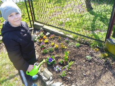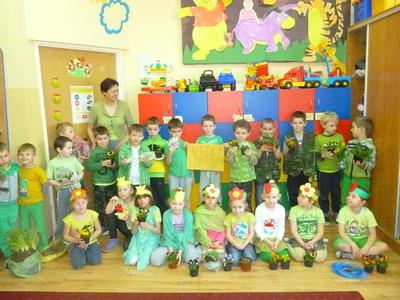 W pierwszym dniu wiosny w sali przedszkolaków zrobiło się zielono i radośnie. Wszystkich od rana czekało wiele pracy i atrakcji. Zmieniliśmy wystrój sali (pojawiły się w niej wiosenne dekoracje), ubieraliśmy marzannę, ozdabialiśmy gaik. Następnie wybraliśmy się nad potok, aby zapoznać dzieci z tradycją topienia marzanny (ze względu na ochronę środowiska nasza marzanna wróciła z nami do kącika przyrody). W ten symboliczny sposób przedszkolaki pożegnały zimę i powitały wiosnę. Wracając podziwialiśmy śliczne pierwiosnki. Następnie dzieci posadziły przyniesione przez siebie rośliny (bratki, stokrotki, żonkile, fiołki...). Nad pracami czuwała miłośniczka ogrodnictwa pani Jola. Jeszcze prace nie dobiegły końca, a w naszym ogródku pojawili się pierwsi goście: biedronka i motylek cytrynek. Po południu dzieci obserwowały „Topienie Marzanny i GOIK” organizowany przez stowarzyszenie LYSKOR, Zespół Szkolno – Przedszkolny i KGW w Rzuchowie. Otrzymały tam nagrody z udział w konkursie „Motywy wiosenne oczami dziecka”. Wszyscy rozeszli się do domów w miłych, wiosennych nastrojach.