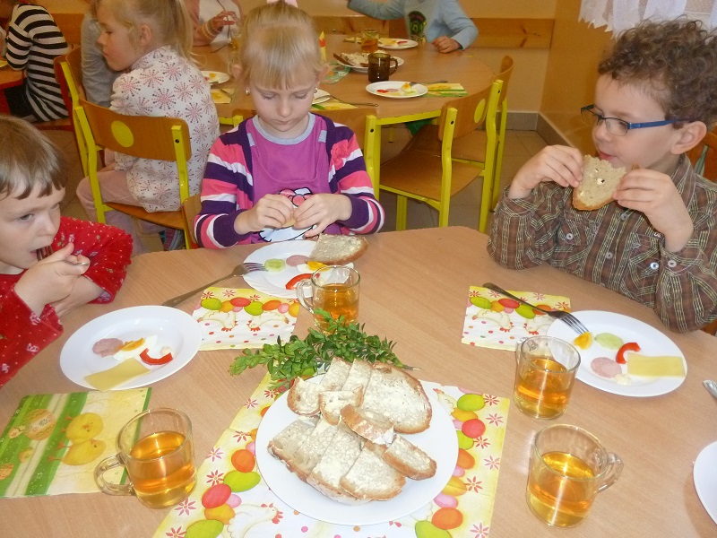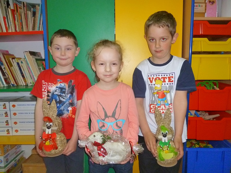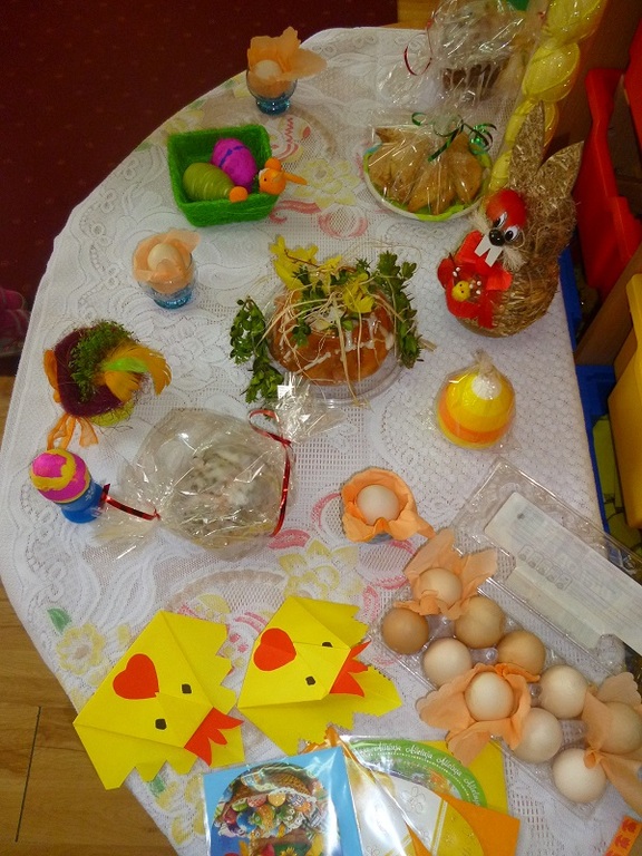 Święta Wielkanocne to czas szczególny, pełen radości, otuchy i nadziei. W naszym przedszkolu przez cały tydzień w świątecznej atmosferze trwały przygotowania. Dzieci poznawały tradycje i zwyczaje Świąt Wielkanocnych, śpiewały piosenki, wykonywały piękne pisanki i ozdoby świąteczne. W związku z nadchodzącymi świętami w naszym przedszkolu odbył się kiermasz świąteczny. Ozdoby świąteczne, pisanki, stroiki, baranki świąteczne oraz wypieki cieszyły się dużym zainteresowaniem. Serdecznie dziękujemy wszystkim rodzicom za zaangażowanie, poświęcony czas i udział w kiermaszu. Jak co roku przedszkolaki zasiadły przy wspólnym wielkanocnym stole, co wprowadziło wszystkich w świąteczny nastrój. A wyczekiwany przez wszystkich wielkanocny zajączek nie zapomniał o grzecznych dzieciach.