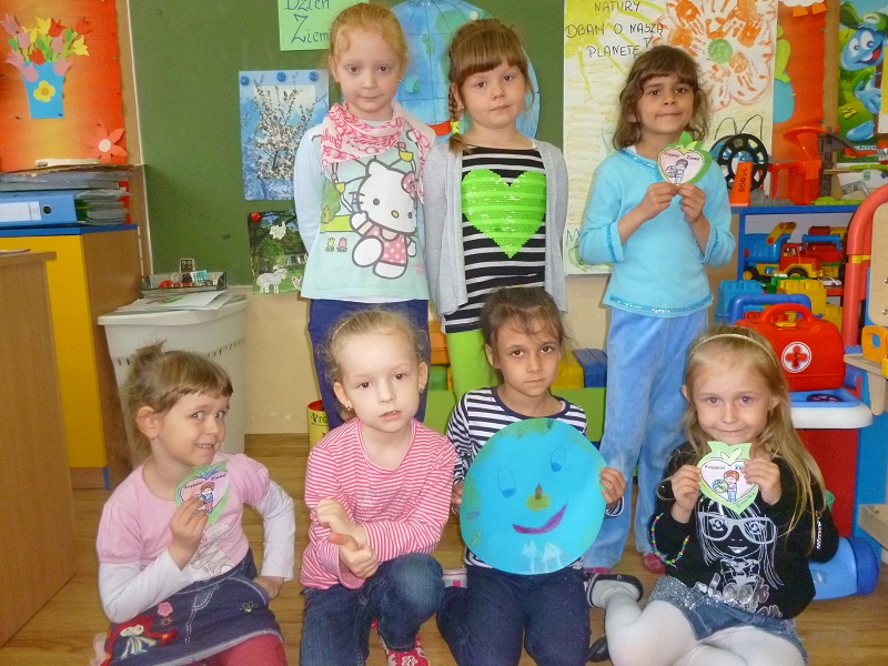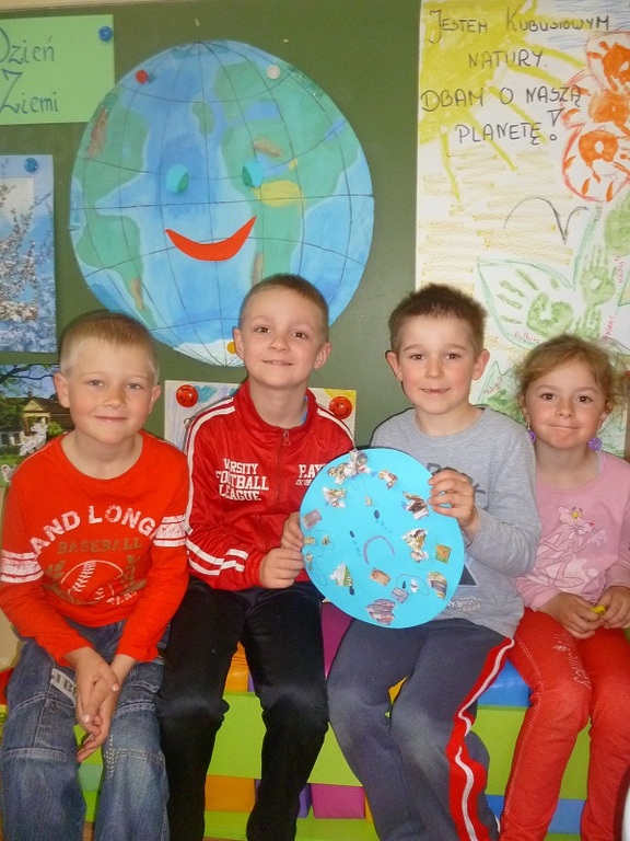 22 kwietnia obchodzimy wyjątkowe święto - Międzynarodowy Dzień Ziemi. Jest to wspaniała okazja, by choć przez chwilę pomyśleć o naszym wspólnym domu – Ziemi. Wspólnie z przedszkolakami zastanawialiśmy się, jak pomóc naszej planecie, by stała się czysta, zdrowa i by cieszyła nas swoim pięknem. Dzieci śpiewały piosenki, rozwiązywały zagadki, a także wykonały piękne prace plastyczne o tematyce proekologicznej. Wszyscy jednogłośnie postanowili zostać przyjaciółmi ziemi. Obiecali, że będą o nią dbać i ją szanować. Na znak tego, każdy przedszkolak dostał odznaczenie „Przyjaciela Ziemi”. Tego samego dnia wyruszyliśmy, by posprzątać nasz przedszkolny plac zabaw oraz ogród. Dzieci nie zapomniały o swoim pięknym ogródku, który wyplewiły i podlały. Mamy nadzieję, że dzieci świadome tego, jak ważne jest dbanie o przyrodę, wyrosną na osoby, które umiejętnie będą korzystały z darów Ziemi.