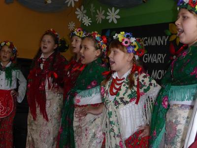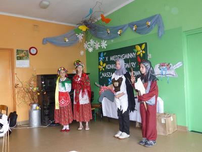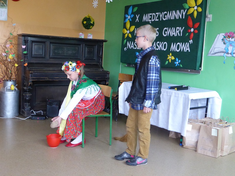 25 kwietnia 2014r. uczniowie Szkoły Podstawowej w Rzuchowie wystąpili w trzech kategoriach na X Międzygminnym Konkursie Gwary "Nasza śląsko mowa" w Pstrążnej. W konkursie wzięli udział uczniowie z sześciu szkół podstawowych - z Kobyli, Adamowic, Zwonowic, Raszczyc, Pstrążnej i Rzuchowa. W kategorii piosenka I miejsce zdobył utwór "Koziery" w wykonaniu uczniów klasy III i IV Szkoły Podstawowej w Rzuchowie - Michasi Ploch, Patrycji Wycisk, Nikoli Seget, Wiktorii Zielonki, Julii Primus, Emilii Karasiewicz, Natalii Grycman i Filipa Franiczka. Za piosenkę "O wuszcie" zespół muzyczny z Rzuchowa otrzymał III nagrodę. Wspaniale zaprezentowali się czwartoklasiści w scence "O wojoku, co się proł z wiatrokami" (Matalia Grycman, Emilia Karasiewicz, Łukasz Ziental, Dominik Szewczyk) oraz inscenizacji "Mysz w piwnicy" (Emilia Karasiewicz i Filip Franiczek). Obie scenki otrzymały ex aequo II miejsce. W kategorii monolog III miejsce zdobyła uczennica IV klasy Natalia Grycman. W tej kategorii wystąpiły też dziewczynki z trzeciej klasy - Nikola Seget i Julia Primus. Uroczystość uświetniło wystąpienie ludowej gawędziarki Pani Agnieszki Rusok, która opowiedziała dzieciom historię o utopcach oraz podzieliła się wspomnieniami i wrażeniami z podróży do Brukseli, którą odbyła w marcu tego roku w towarzystwie zwycięzców konkursu "Po naszymu, czyli po śląsku". Spotkanie miłośników śląskiej gwary przebiegało w niezwykle miłej i serdecznej atmosferze, dzieci dobrze bawiły się nie tylko w czasie występów, ale też przy wspólnym śpiewaniu ludowych i biesiadnych pieśni.