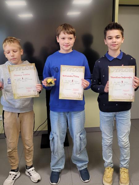 11.11.2025 Aktualności Rejonowe Igrzyska Dzieci w szachach 7.11.2025r nasi uczniowie: Aleksander Pilch, Oliwier Cieślik, Alicja Mróz oraz Adrian Czogała startowali po raz pierwszy w rejonowym turnieju szachowym w grupie ID klas 4-6 w Raciborzu. Zawodnicy stanęli... Czytaj więcej